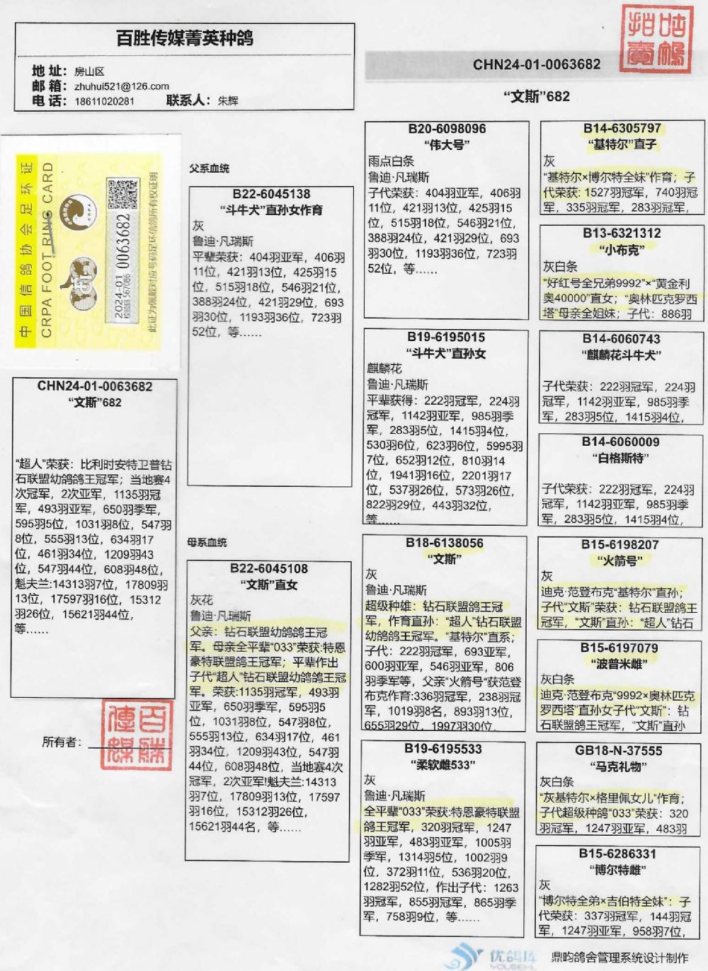 2024年北京百鴿園聯(lián)盟杯四關(guān)鴿王47名;174名(同窩)