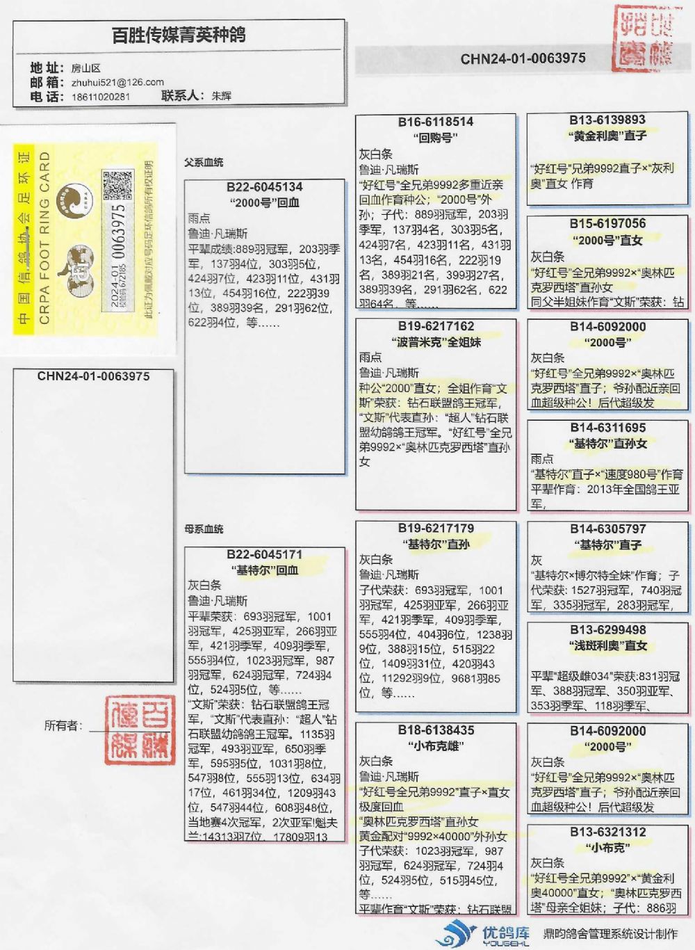 2024年北京百鴿園聯(lián)盟杯四關(guān)鴿王47名;174名(同窩)
