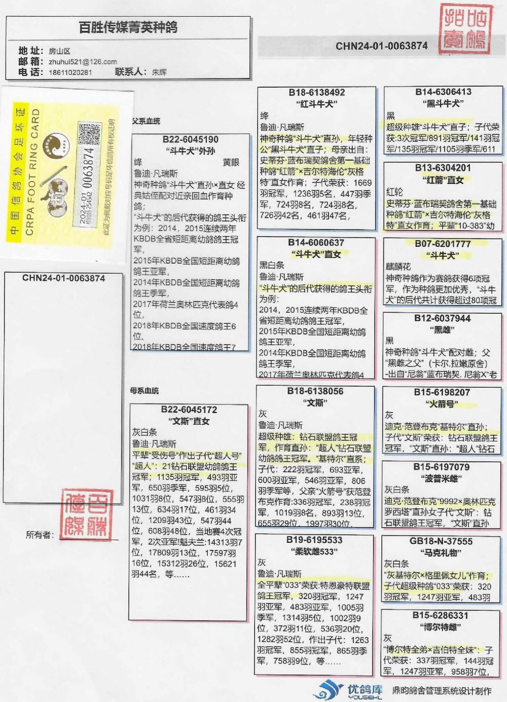 2024年北京百鴿園聯(lián)盟杯四關(guān)鴿王47名;174名(同窩)