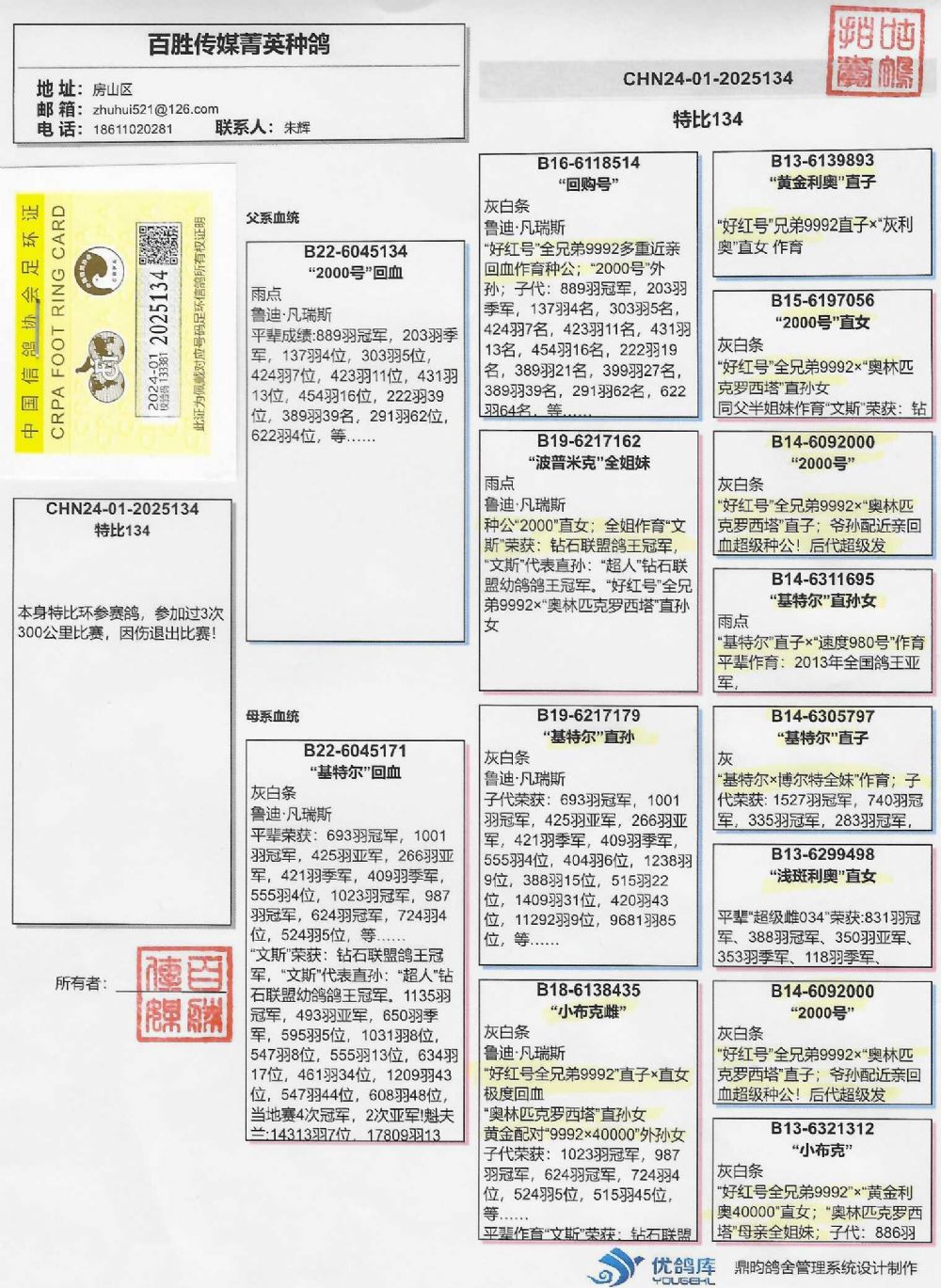 2024年北京百鴿園聯(lián)盟杯四關(guān)鴿王47名;174名(同窩)