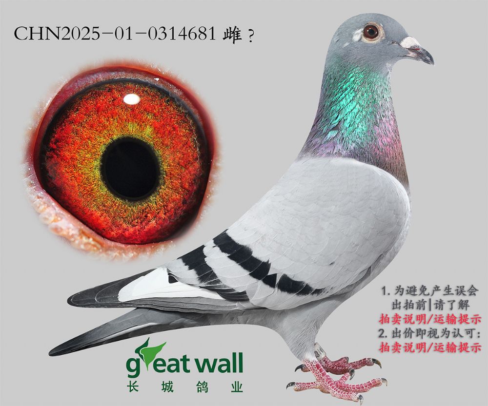 因拍賣鴿均是未做育過的種鴿或幼鴿,圖內(nèi)所標(biāo)雌雄僅供參考,實際性別已實物為準(zhǔn)。