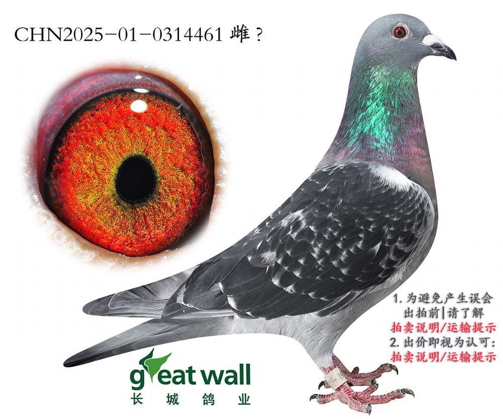 因拍賣鴿均是未做育過的種鴿或幼鴿,圖內(nèi)所標雌雄僅供參考,實際性別已實物為準。