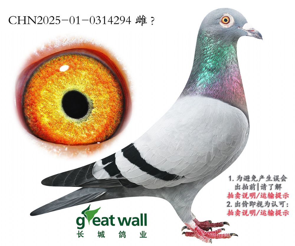 因拍賣鴿均是未做育過的種鴿或幼鴿,圖內(nèi)所標雌雄僅供參考,實際性別已實物為準。