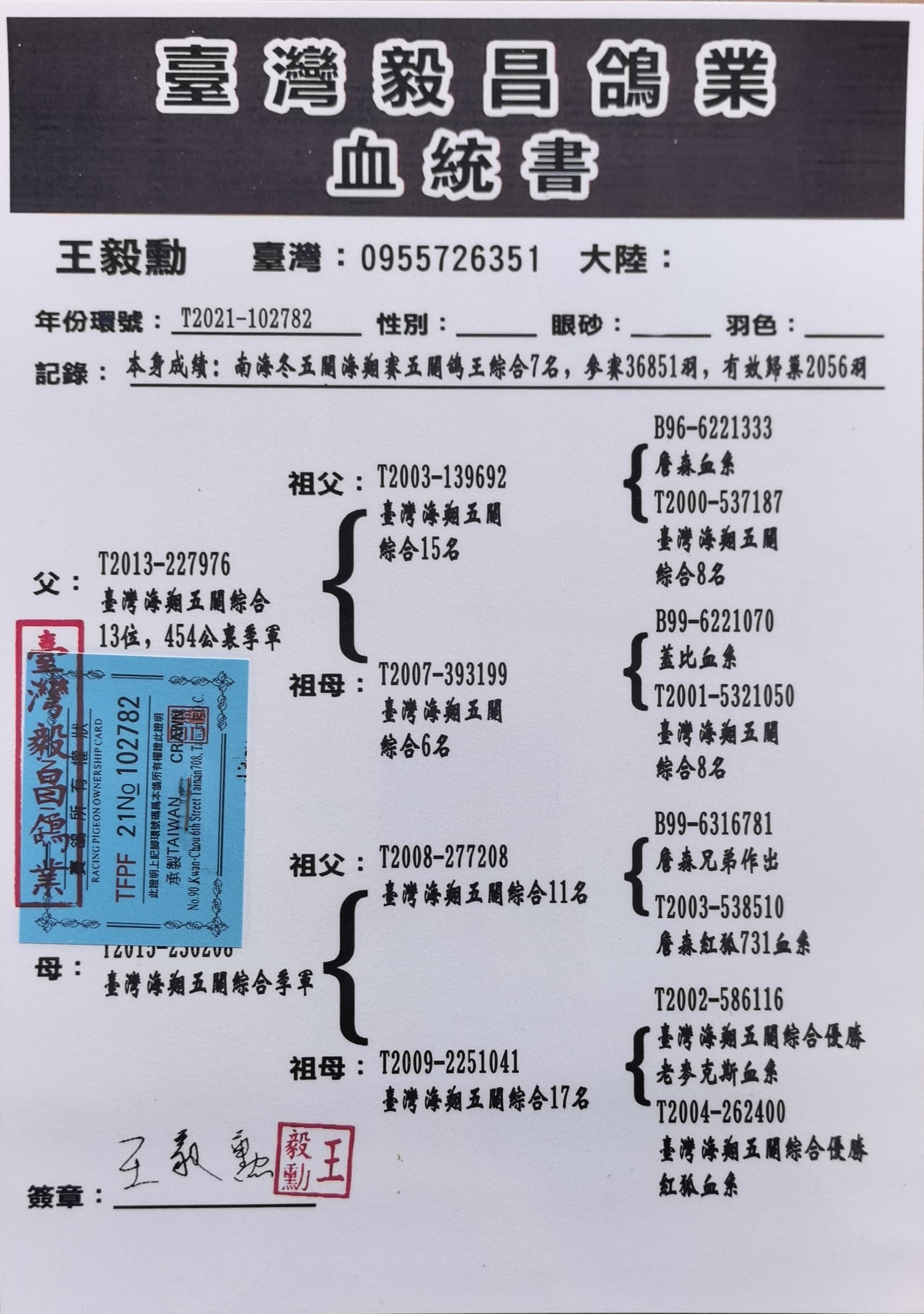 - 當(dāng)前查看拍賣鴿:臺(tái) 灣 榖 昌 鴿 業(yè)-王毅勷 作育