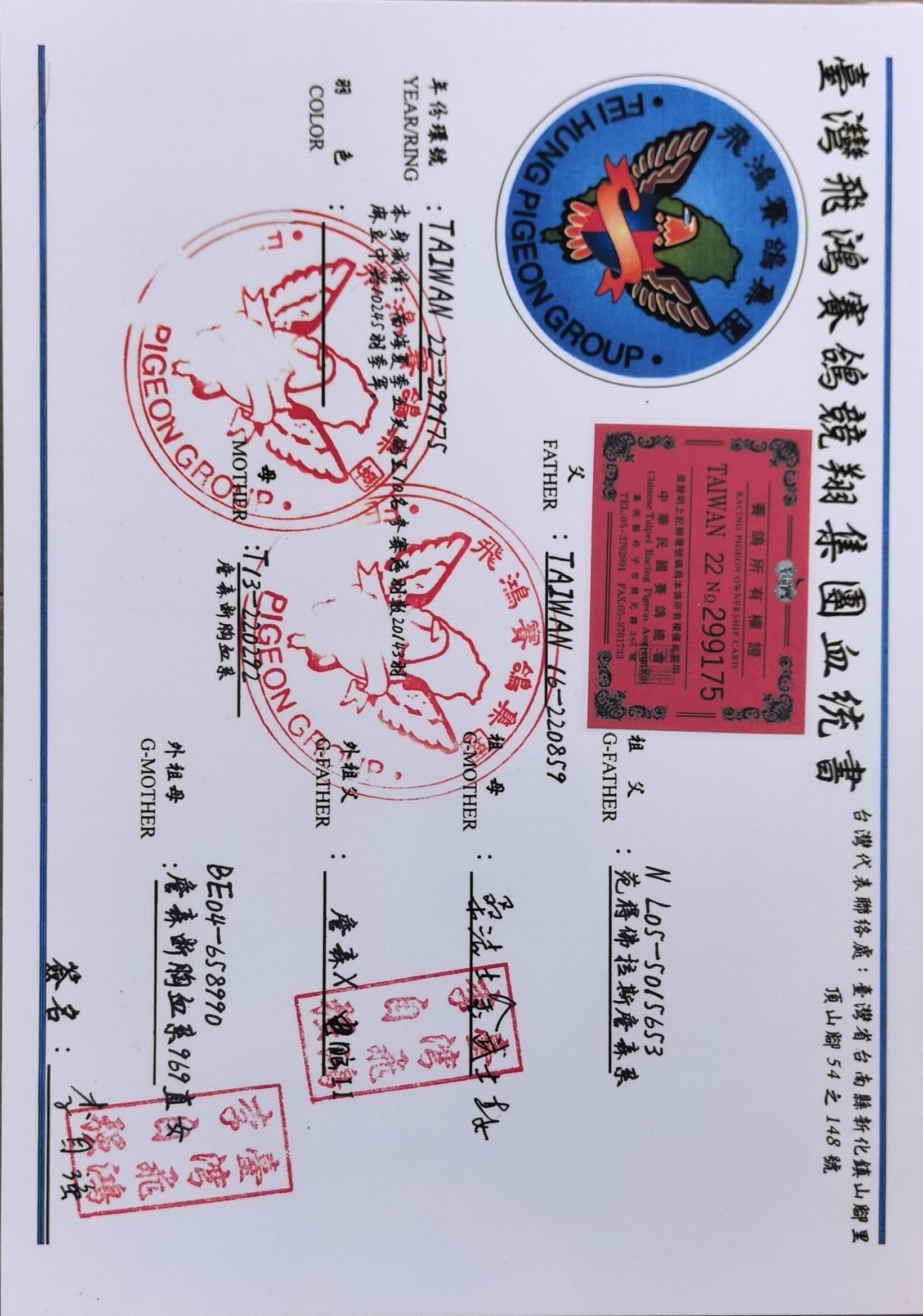 - 當(dāng)前查看拍賣鴿:臺(tái)灣飛鴻賽鴿競(jìng)翔作育詹森斷胸血系