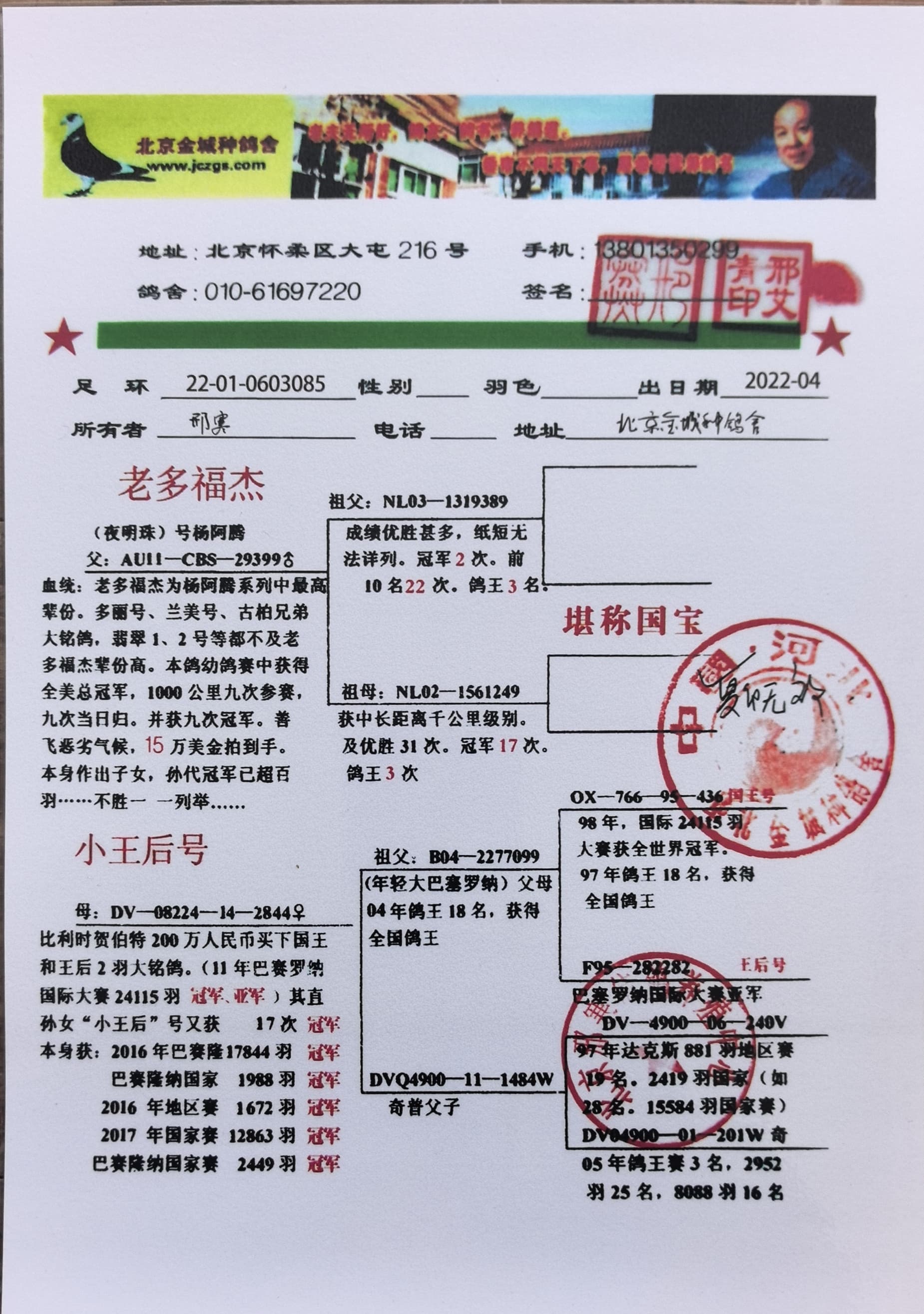 1610698 血統(tǒng):奶酪本身成績800公里冠軍 ¥0元 0次