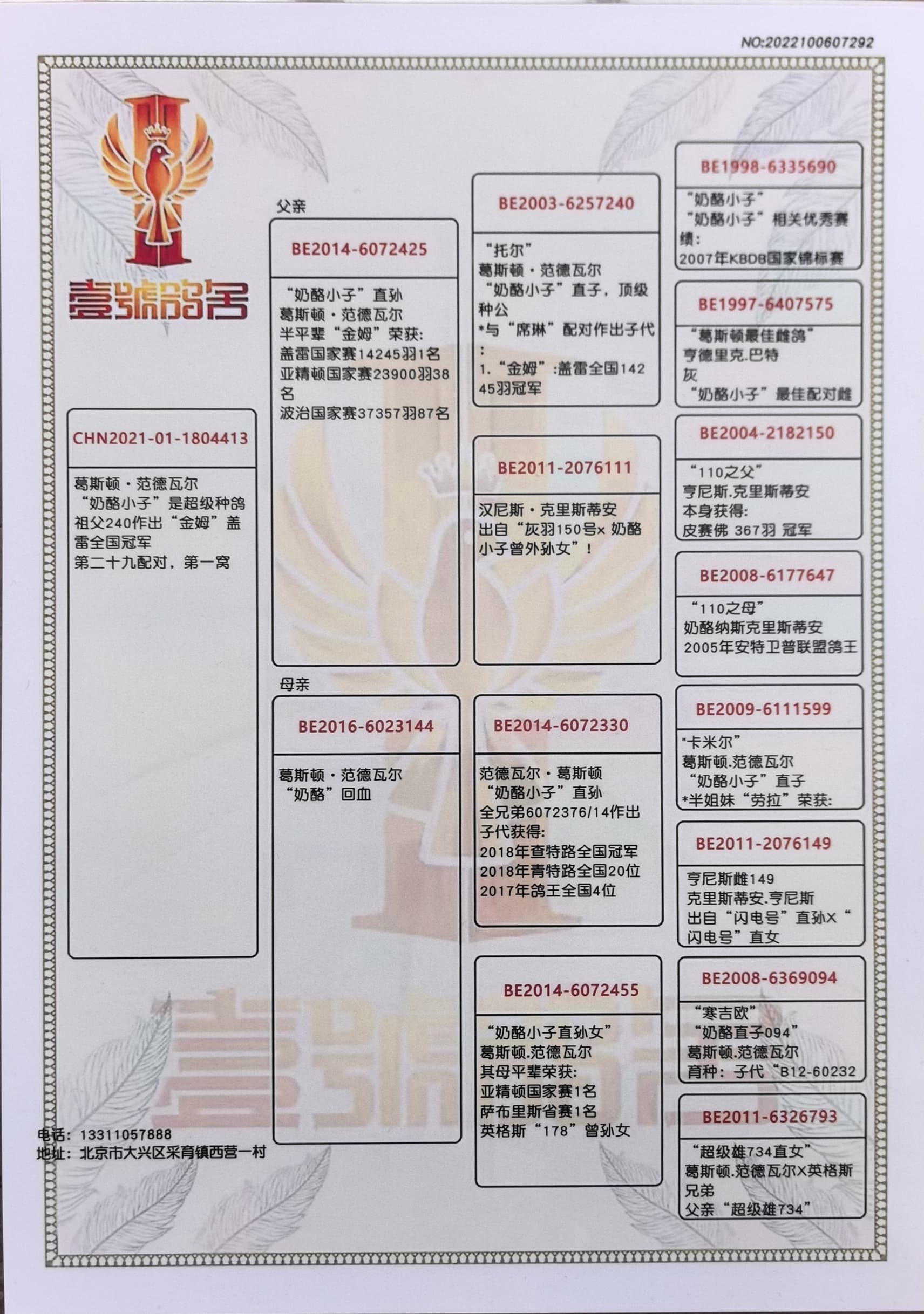 - 當(dāng)前查看拍賣鴿:壹號鴿舍 葛斯頓·范德瓦爾