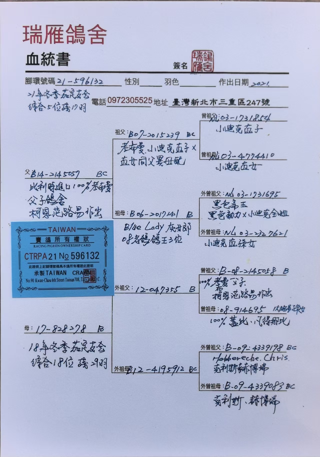 - 當(dāng)前查看拍賣鴿:臺灣瑞雁鴿舍作育考夫曼小迪克直子