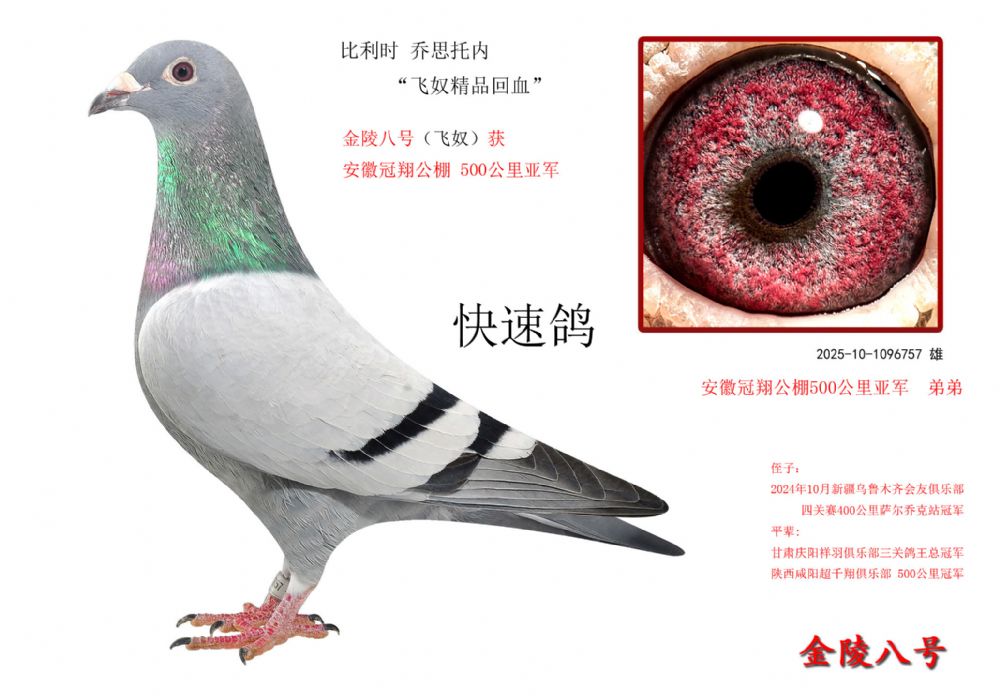 “金陵八號”鴿業(yè)再次提供“俊超”系幼鴿(由喬思托內(nèi)、詹森、桑杰士、紅卡多、福洛英格斯、魯?shù)揽死、考夫曼、迪盧速霸龍、佛卡門、羅伯特、白衣殺手灰鷹、紅公系、電腦號等組成)。