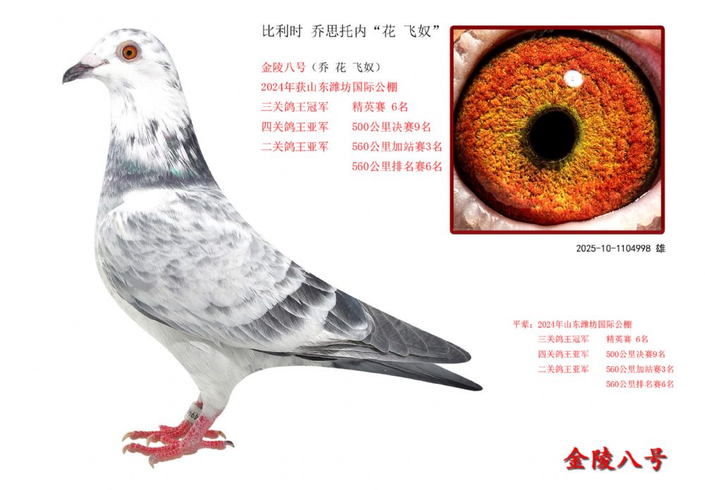 “金陵八號”鴿業(yè)再次提供“俊超”系幼鴿(由喬思托內(nèi)、詹森、桑杰士、紅卡多、福洛英格斯、魯?shù)揽死⒖挤蚵、迪盧速霸龍、佛卡門、羅伯特、白衣殺手灰鷹、紅公系、電腦號等組成)。