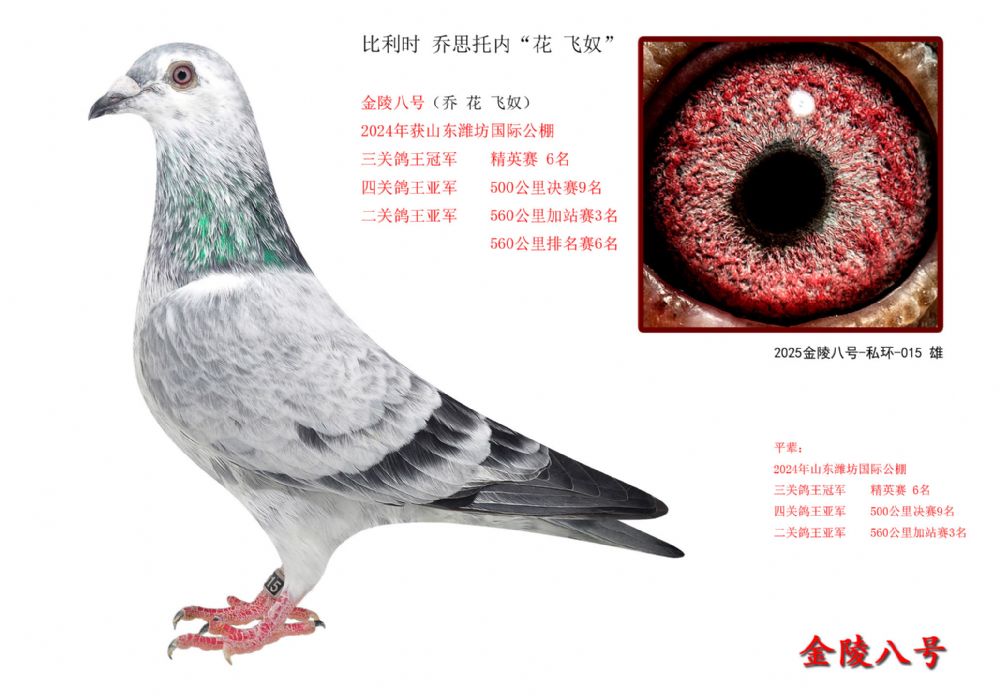 “金陵八號(hào)”鴿業(yè)再次提供“俊超”系幼鴿(由喬思托內(nèi)、詹森、桑杰士、紅卡多、福洛英格斯、魯?shù)揽死、考夫曼、迪盧速霸龍、佛卡門(mén)、羅伯特、白衣殺手灰鷹、紅公系、電腦號(hào)等組成)。