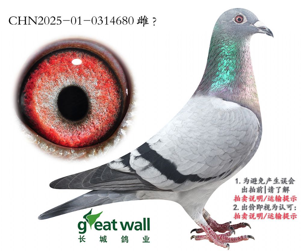 因拍賣鴿均是未做育過的種鴿或幼鴿,圖內(nèi)所標雌雄僅供參考,實際性別已實物為準。