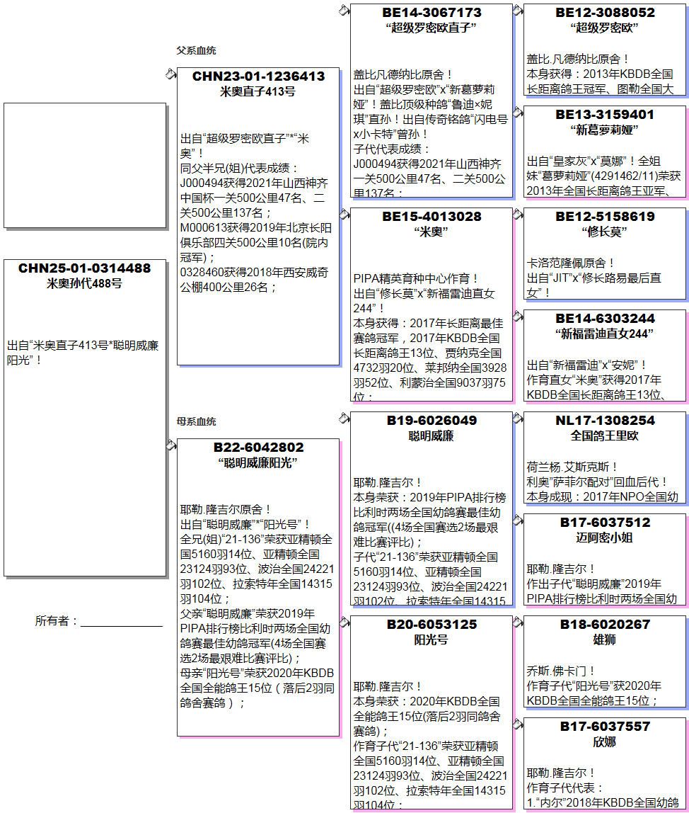 因拍賣鴿均是未做育過的種鴿或幼鴿,圖內(nèi)所標雌雄僅供參考,實際性別已實物為準。