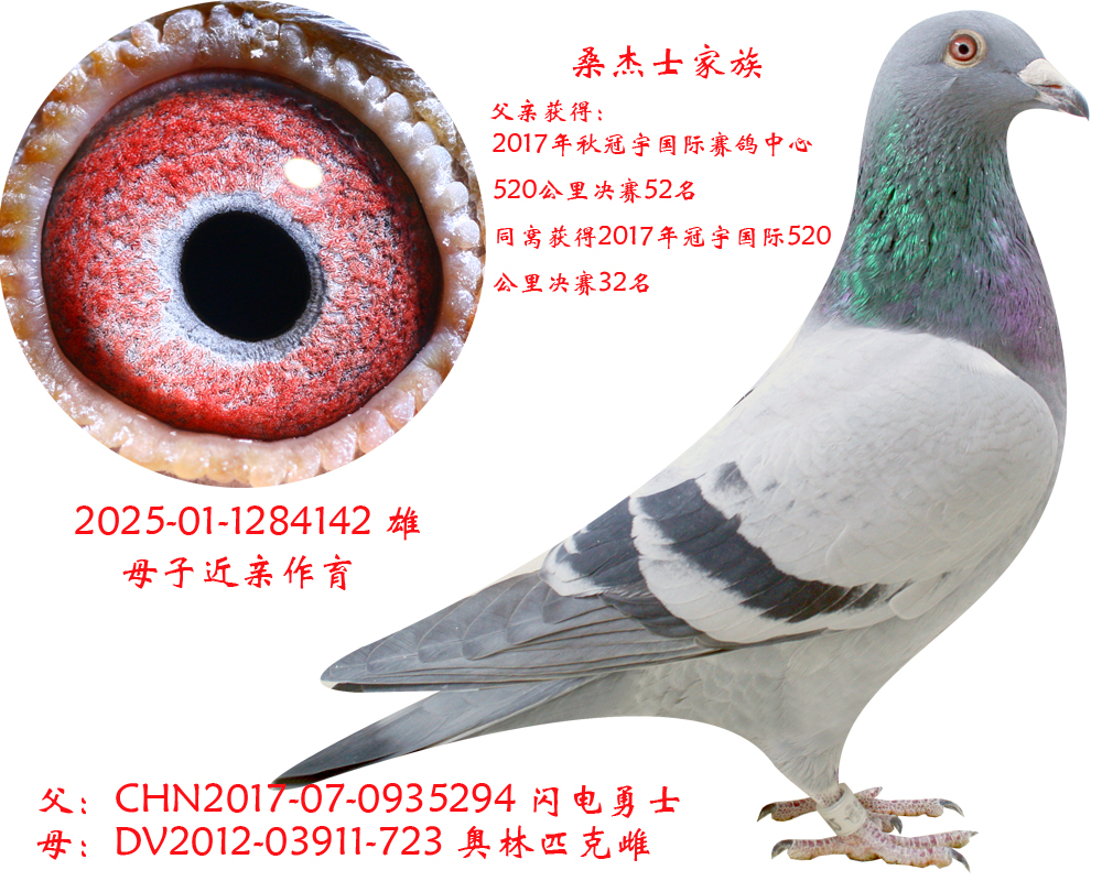 子代成績(jī):2017年秋冠宇國(guó)際賽鴿中心(1000元小棚)520公里決賽52名,200元指定鴿5名,300元指定鴿季軍,500元指定鴿亞軍。