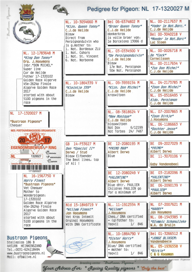②子代“波巴里”入賞2015年NPO幼鴿鴿王6位和2016年SS.G/Ijssel秋賽鴿王冠軍