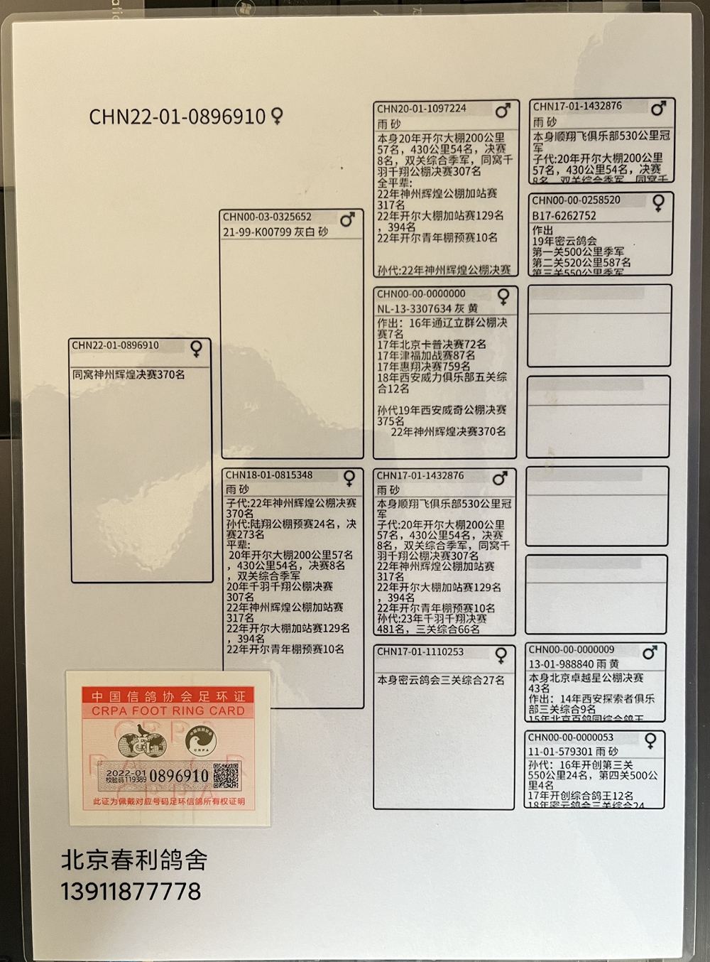 母;CHN18-01-0815348 子代:22年神州輝煌公棚決賽370名;