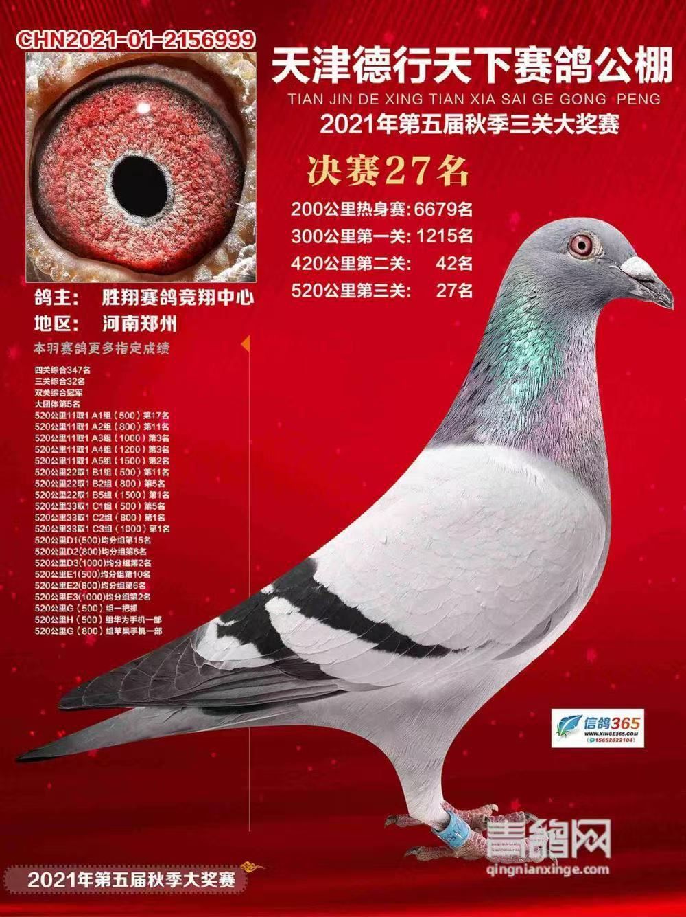 天津德行天下賽鴿公棚雙關(guān)綜合鴿王冠軍;