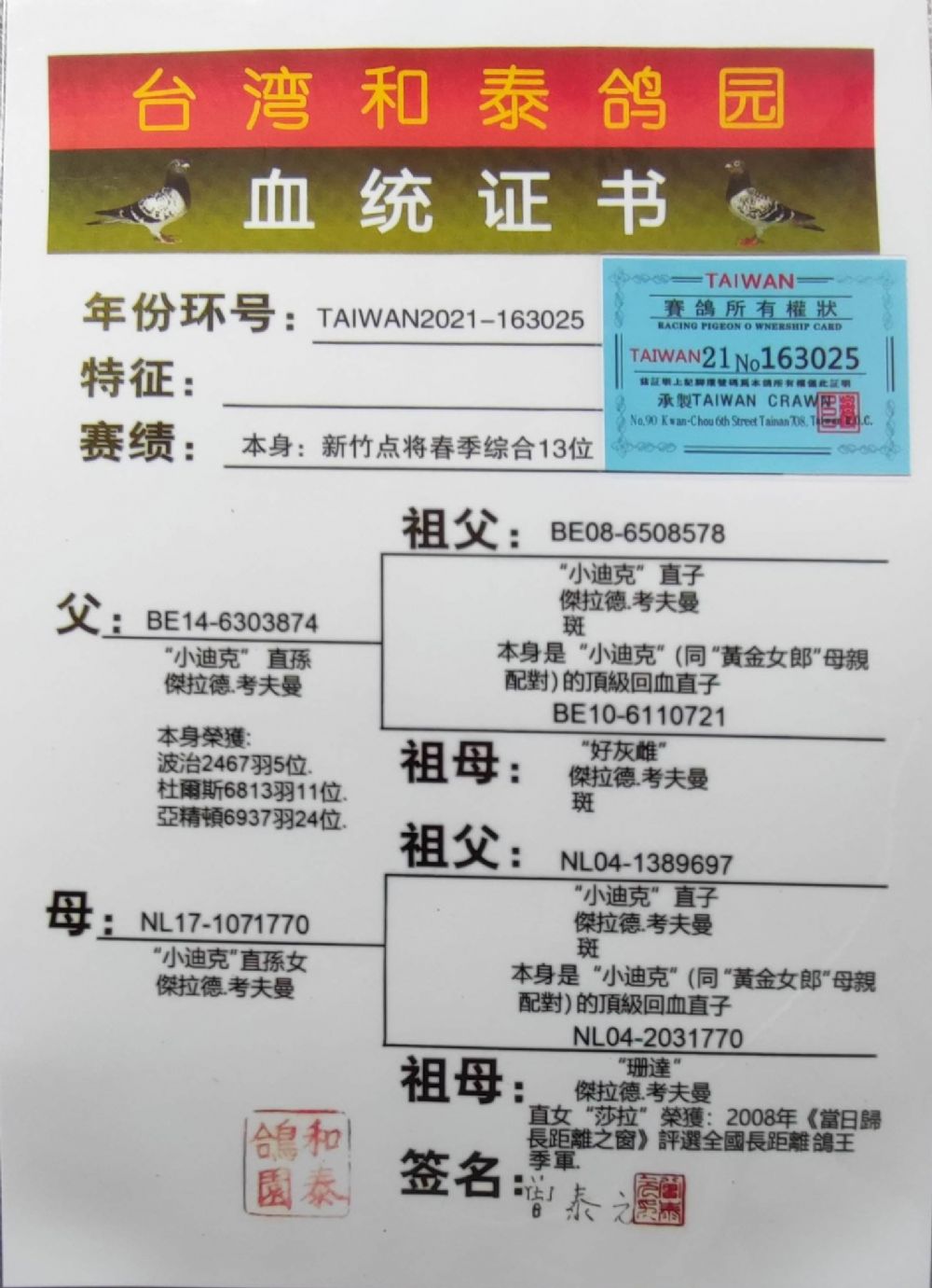 • 血統(tǒng)書:查看大圖