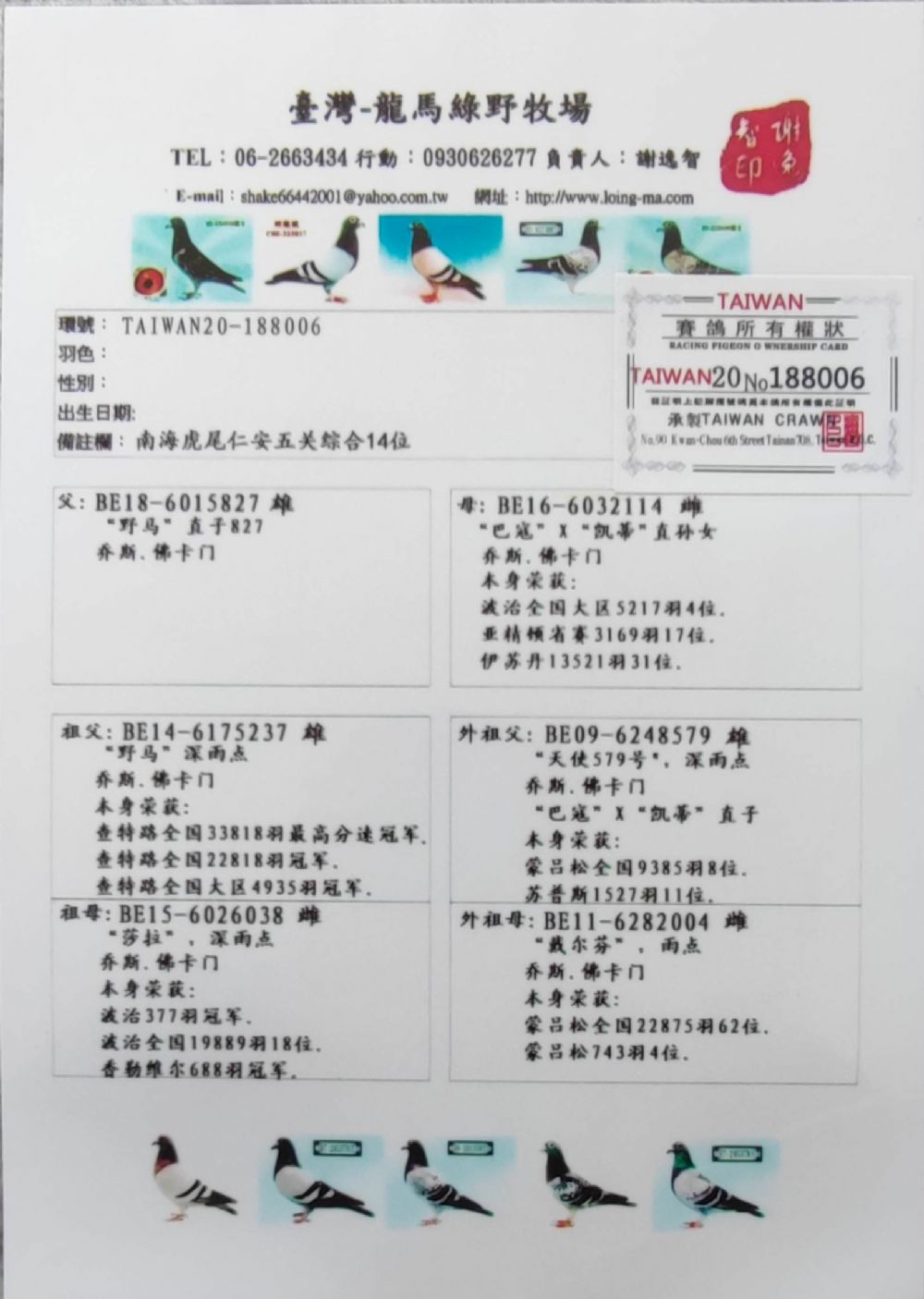 1612782 三關鴿王綜合7名 ¥0元 0次