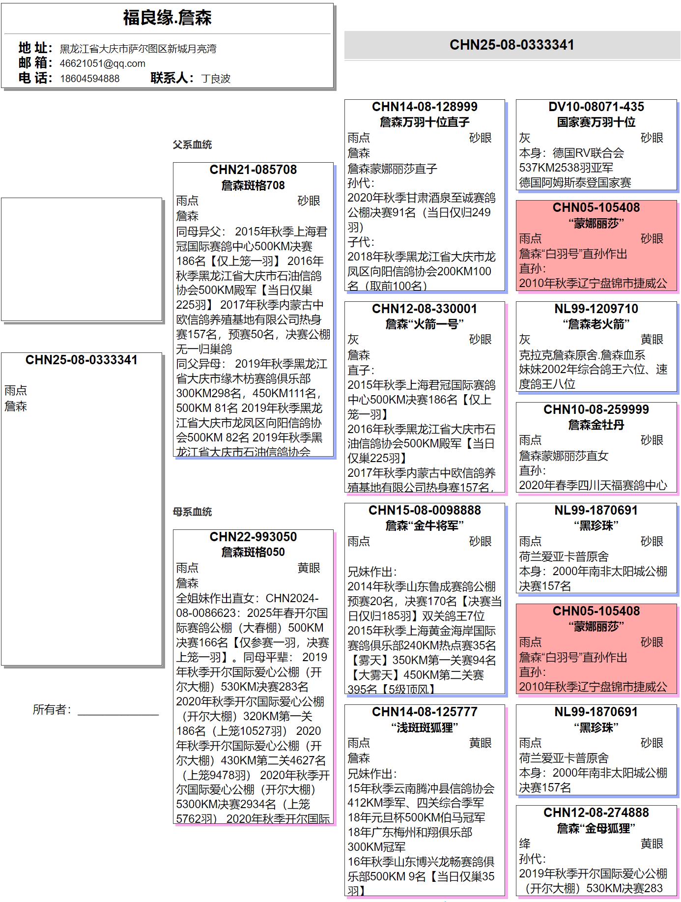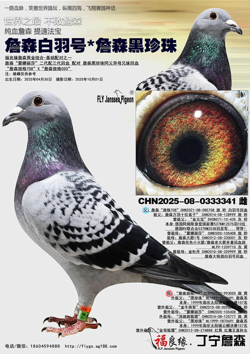 父:詹森“斑格708”CHN2021-08-085708 斑 砂 白羽號(hào)回血