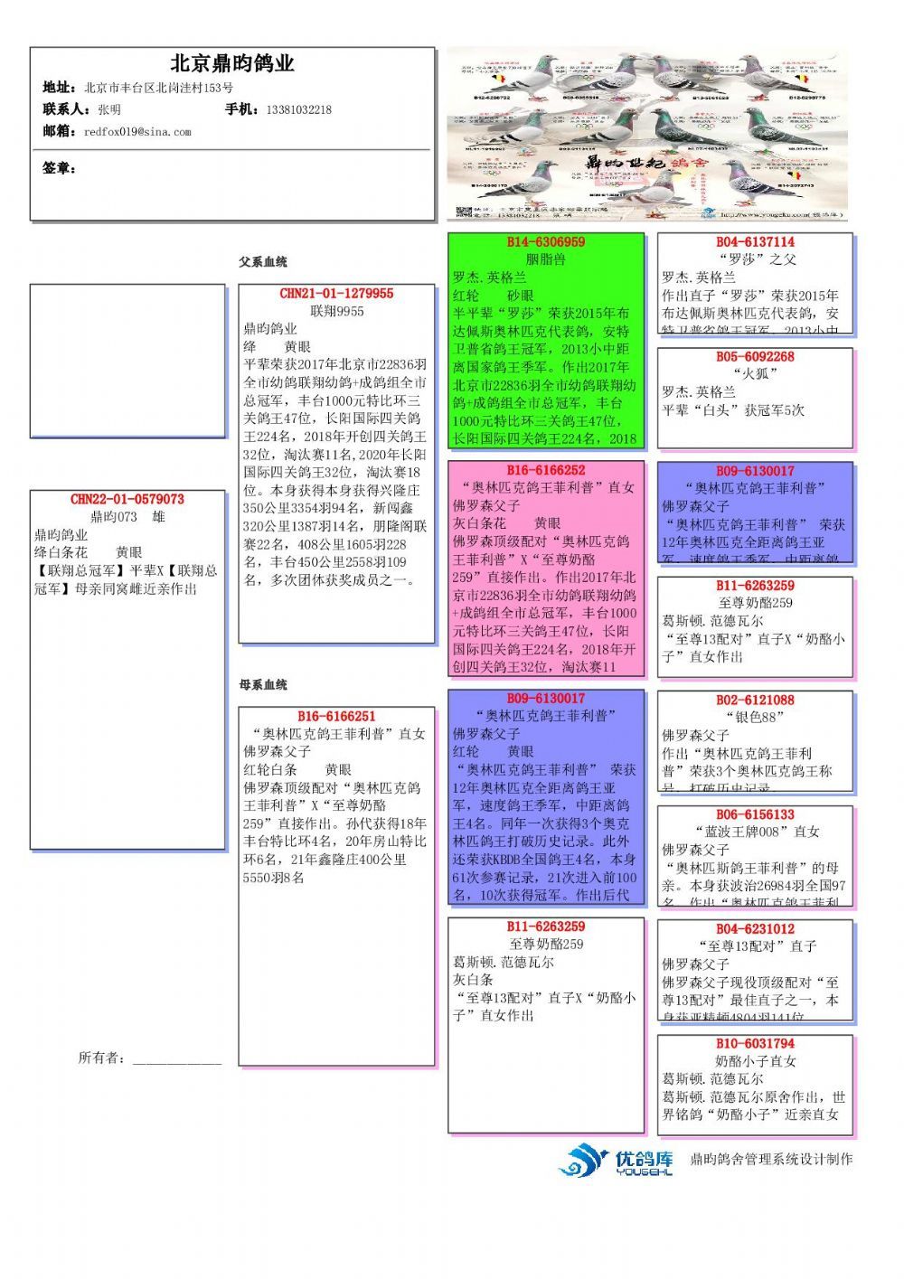 北京鼎昀鴿舍張明 聯(lián)翔冠軍-0579073