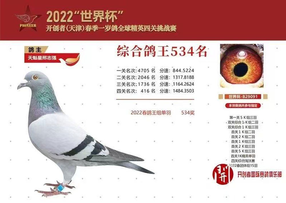 天津開創(chuàng)者-世界杯四關(guān)綜合鴿王534名;