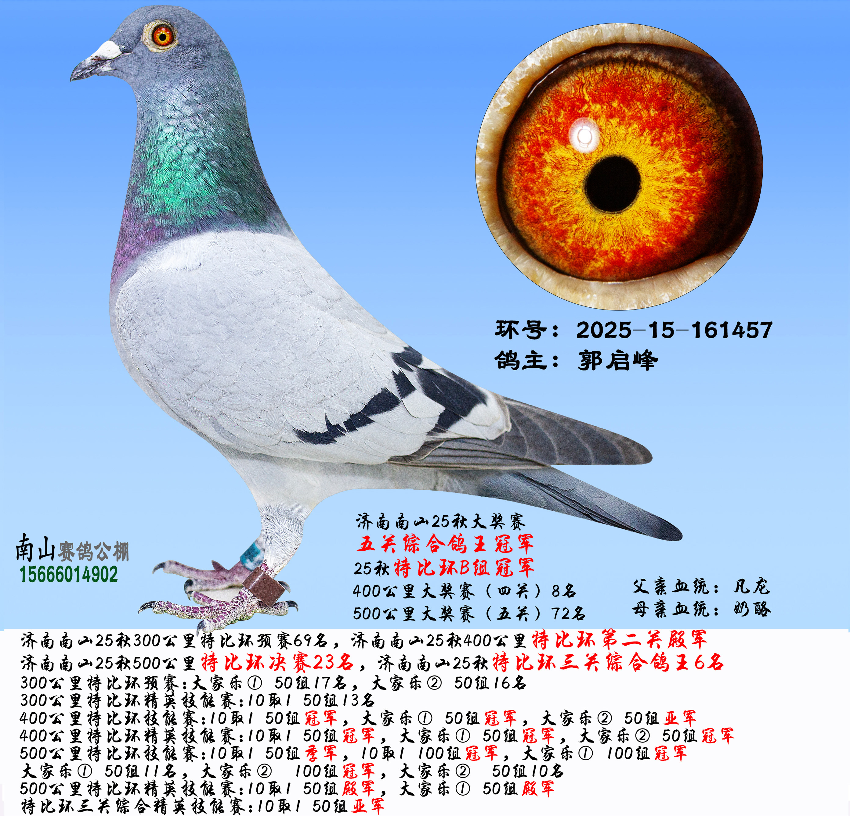 濟(jì)南南山25秋大獎賽五關(guān)綜合鴿王冠軍