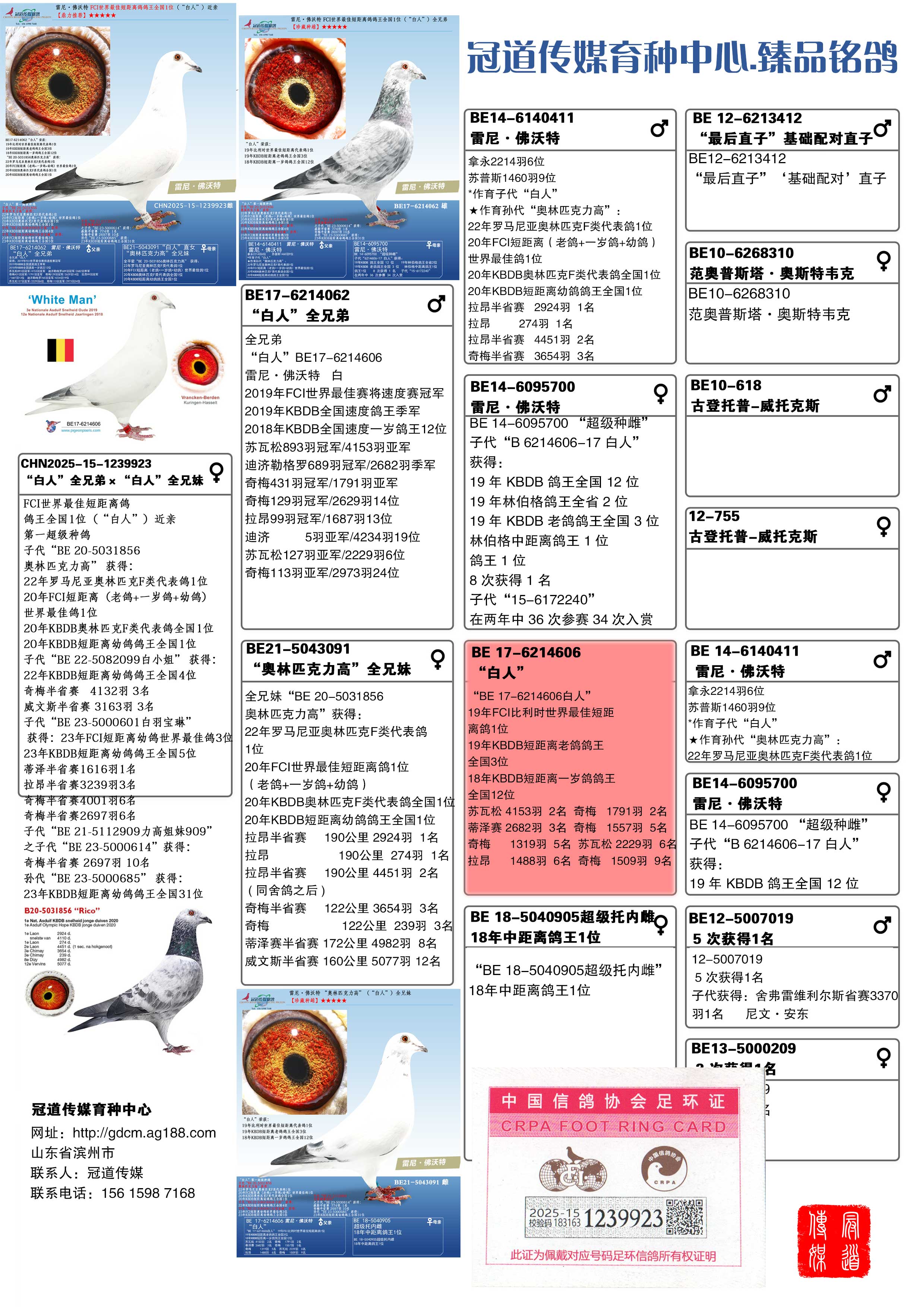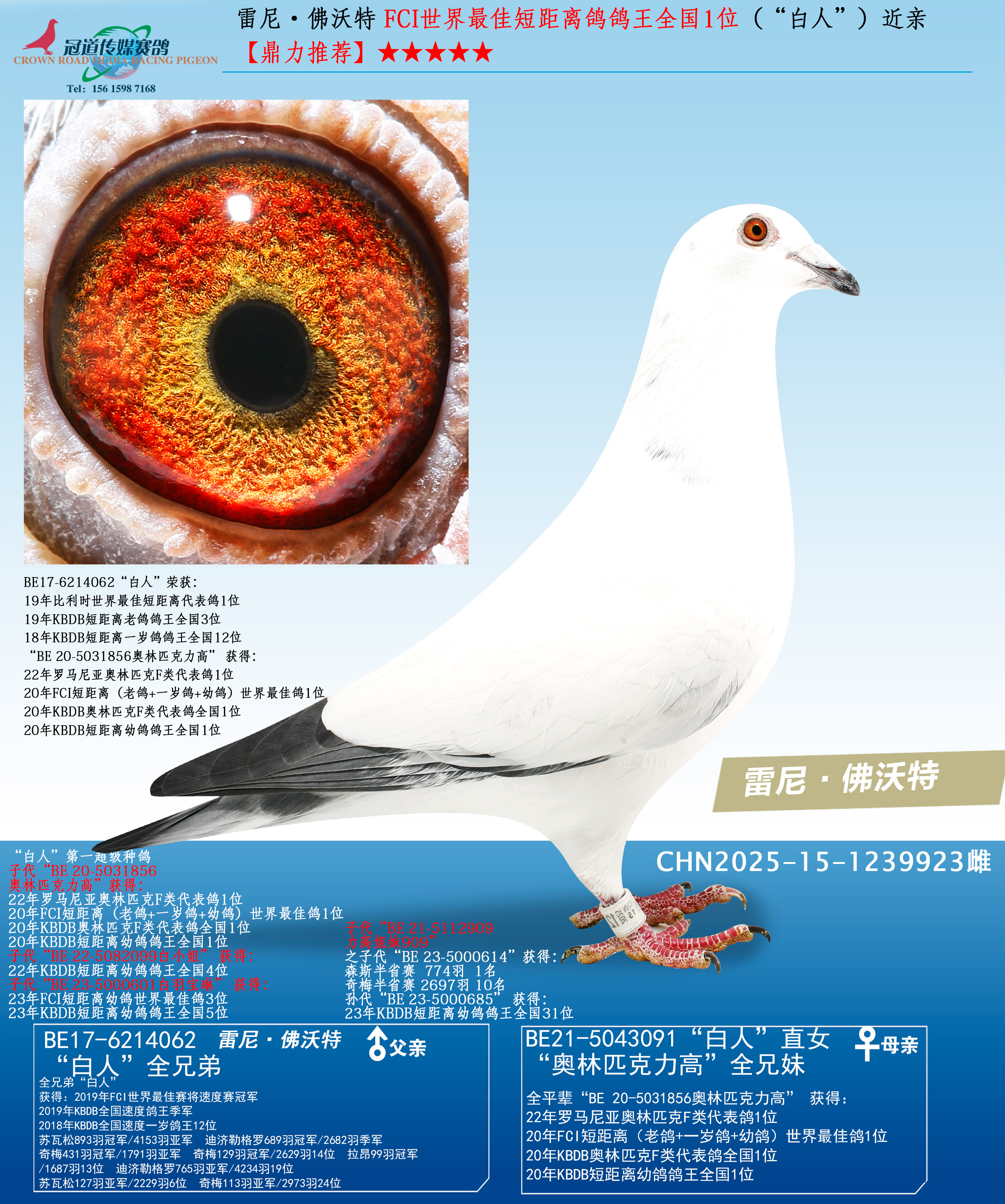 FCI世界最佳短距離鴿鴿王全國1位(“白人”)近親