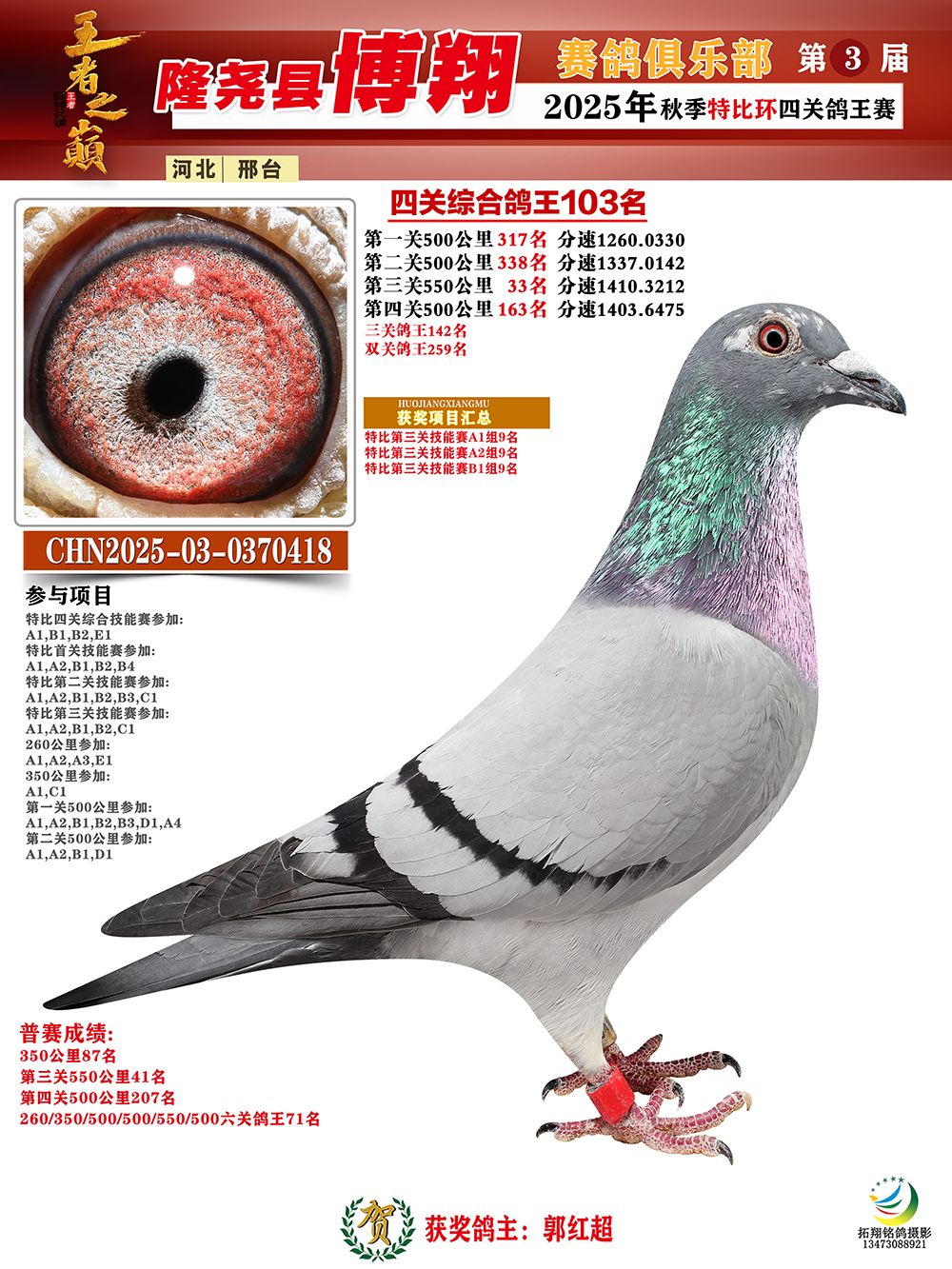 | 1626340 | 博翔特比四關(guān)鴿王125名 | ¥200元 | 1次 |