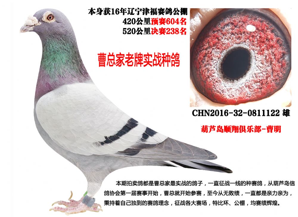 本期拍賣鴿都是曹總家的最實戰(zhàn)鴿子,一直征戰(zhàn)在一線的種賽鴿,曹總從葫蘆島市信鴿協(xié)會第一屆開始就參賽,至今從無敗績,公棚也是如魚得水,屢戰(zhàn)屢勝,曹總養(yǎng)鴿一直都是親力親為,秉持著自己獨到的賽鴿理念,征戰(zhàn)在全國各大賽場,戰(zhàn)績輝煌。