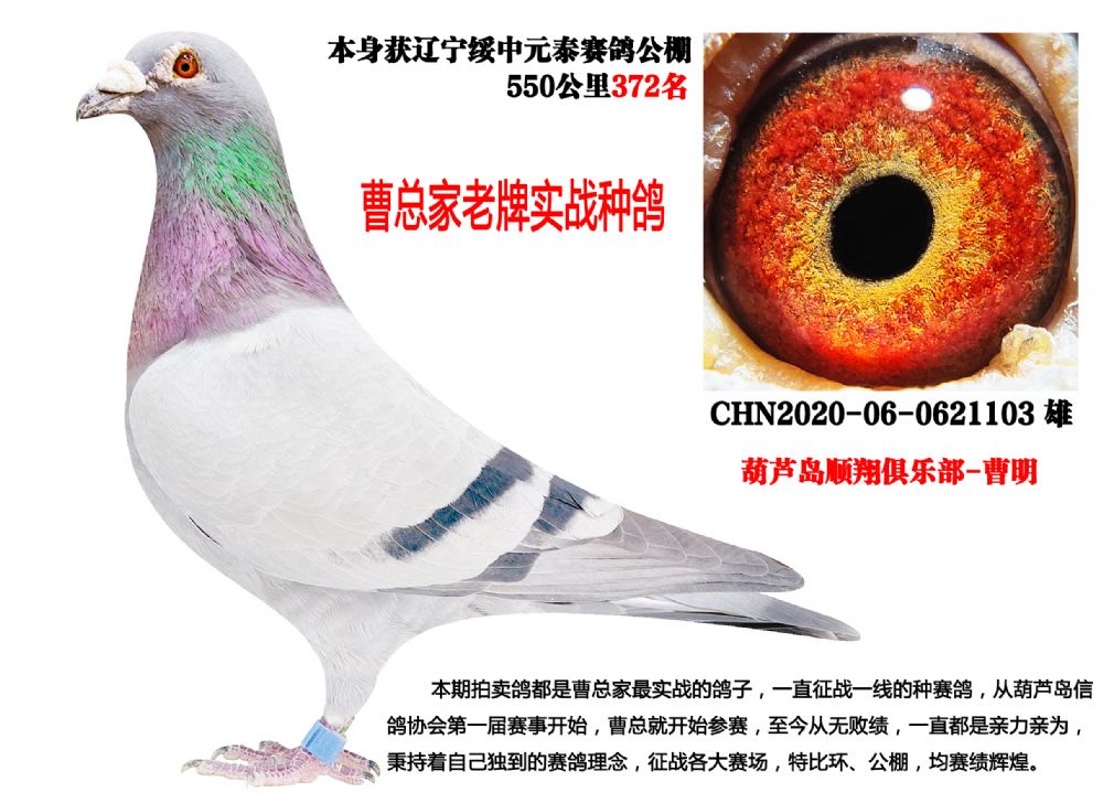 本期拍賣鴿都是曹總家的最實(shí)戰(zhàn)鴿子,一直征戰(zhàn)在一線的種賽鴿,曹總從葫蘆島市信鴿協(xié)會第一屆開始就參賽,至今從無敗績,公棚也是如魚得水,屢戰(zhàn)屢勝,曹總養(yǎng)鴿一直都是親力親為,秉持著自己獨(dú)到的賽鴿理念,征戰(zhàn)在全國各大賽場,戰(zhàn)績輝煌。