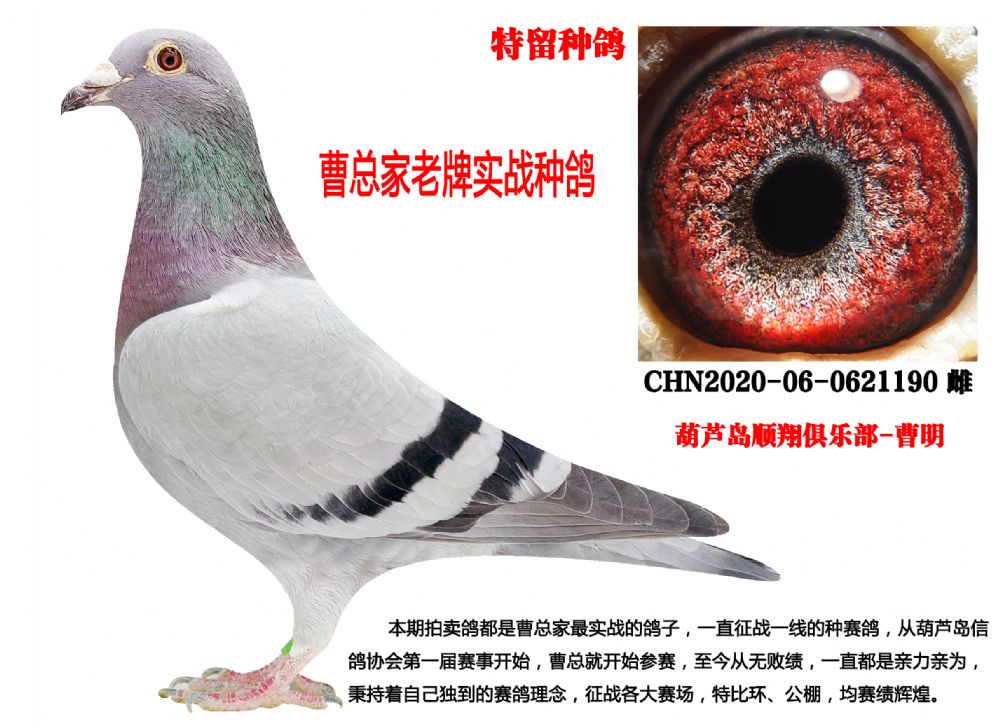 本期拍賣鴿都是曹總家的最實(shí)戰(zhàn)鴿子,一直征戰(zhàn)在一線的種賽鴿,曹總從葫蘆島市信鴿協(xié)會(huì)第一屆開始就參賽,至今從無敗績,公棚也是如魚得水,屢戰(zhàn)屢勝,曹總養(yǎng)鴿一直都是親力親為,秉持著自己獨(dú)到的賽鴿理念,征戰(zhàn)在全國各大賽場,戰(zhàn)績輝煌。