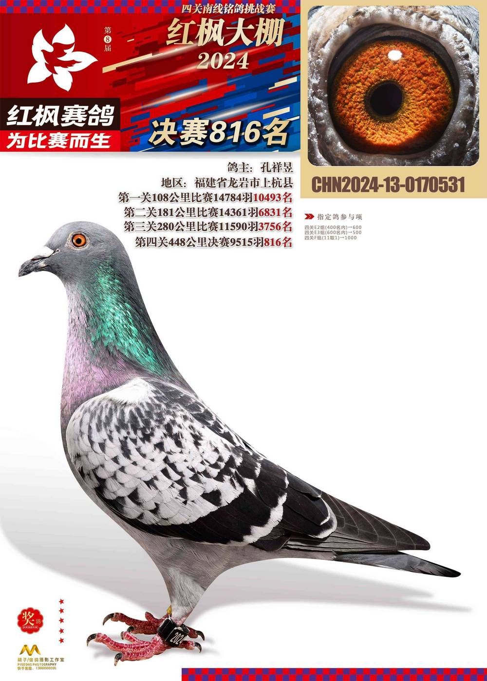 貴州紅楓賽鴿中心(大棚)第四關(guān)448公里決賽816名;參與指定:2100元;