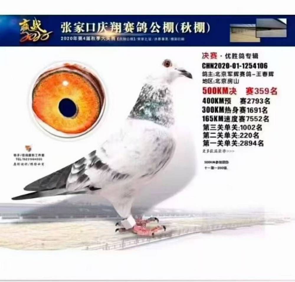 張家口慶翔賽鴿公棚500公里決賽359名;