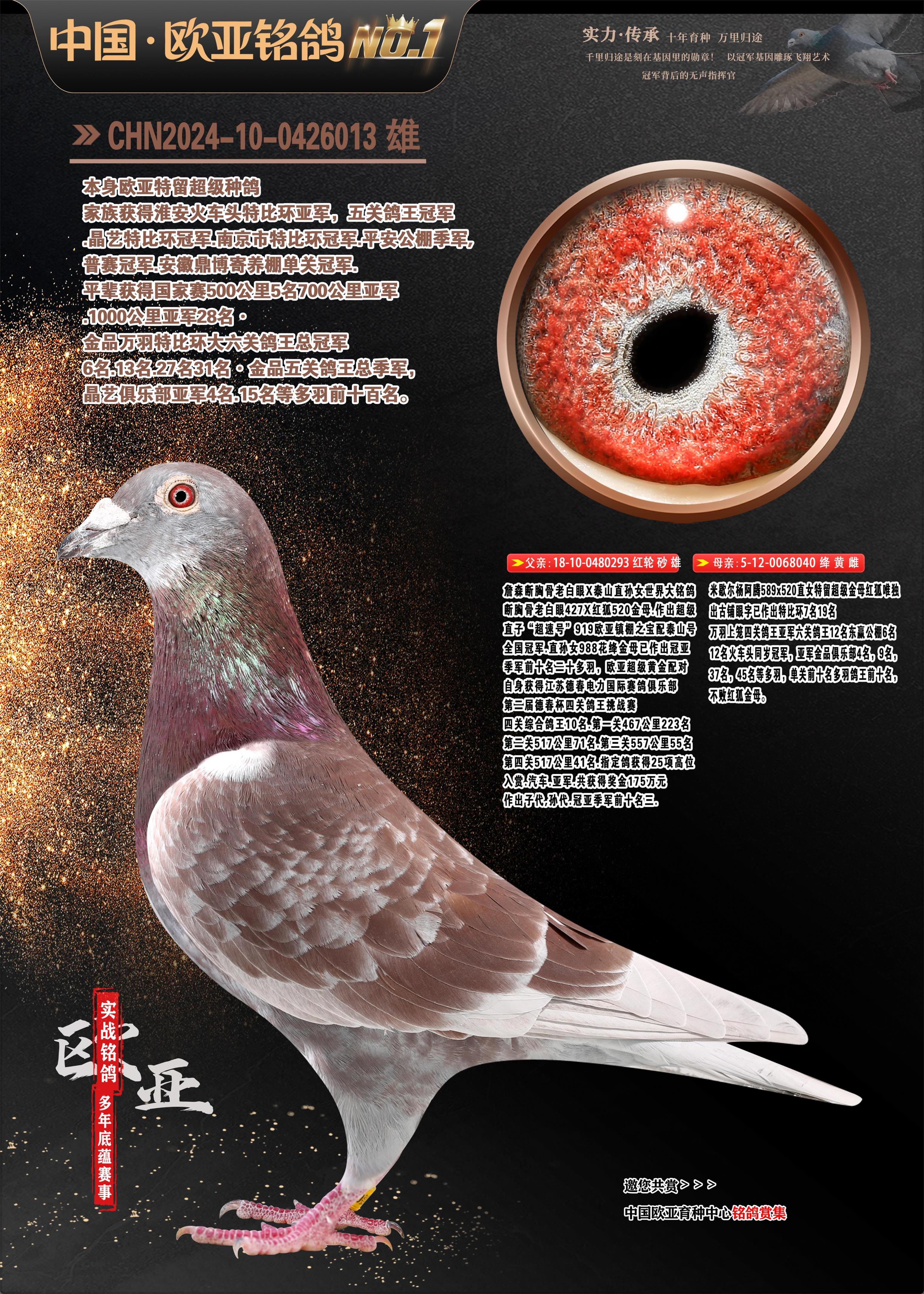 24年秋南京特比環(huán)歐亞榮獲大團體冠軍.小團體冠軍551公里大特比13名.14名.16名.19名.20名.21名.24名.26名.27名.28名.42名.52名.54名.57名.65名.66名.68名.70名.71名.72名.74名.76名.80名.82名.83名.84名.85名.86名.90名.92名.110名.116名.121名.122名.128名.131名.158名.161名.164名.165名.166名.172名.174名.177名.182名.195名.196名.201名.205名.208名.210名.216名.253名.269名.275名.276名.294名.296名.299名,,24年秋云南天南銅都公棚決賽415名.天南銅都小棚決賽409名.云南玉活公棚決賽102名.490名.團體32名上籠二羽進二羽,天南銅都大棚506公里決賽445名。熱烈祝賀河北省巨鹿縣李蘭生老師用歐亞泰山號血系連續(xù)十一年奪冠軍,河北省國家賽冠軍.全國季軍等多次前十名高位,揚州王軍王總用歐亞利奧24年春季獲山東翔宇公棚決賽33名蓋比53名。南京劉正龍劉總用歐亞蓋比獲得24年秋山東濰坊國際公棚決賽42名.精英賽30名.三關(guān)鴿王71名.決賽86名.加站賽16名.南京市特比環(huán)A組鴿王9名.B組鴿王5名.6名.C組鴿王5名.精英賽冠軍4名.技能賽A組冠軍4名.5名.秦淮區(qū)特比環(huán)榮獲15名.46名.48名.87名。四川西昌徐亮徐總用歐亞利奧獲得涼山州聚友決賽177名.第二關(guān)亞軍雙關(guān)鴿王19名.三關(guān)鴿王105名.云南豪庭公棚決賽603名。熱烈祝賀24年四川重慶翔園鴿舍用歐亞泰山號榮獲春季400公里冠軍.秋季500公里冠軍,河北王總用詹森X利奧獲得千羽千翔公棚400公里冠軍,廣東蔡楷煥榮獲24年秋愛好者 賽鴿俱樂部三關(guān)鴿王季軍.一關(guān)420公里99名.二關(guān)450公里11名.三關(guān)520公里32名.單關(guān)季軍.7名.12名,江西李衛(wèi)興榮獲貴州紅楓公棚8名.共翔俱樂部寄養(yǎng)棚四關(guān)綜合鴿王30名.一關(guān)400公里78名.二關(guān)500公里55名.三關(guān)520公里37名.四關(guān)500公里57名.同父母獲公棚18名.雷鳴獲得武漢黃浦育翔中心冠軍,四川陳文獲得四川明鴻俱樂部300公里夢幻2名.3名.4名.9名.10名.13名.14名.15名.31名.34名.40名.41名.42名.43名.69名.71名.72名.73名.74名.94名.95名.97名.98名.99名.419公里決賽榮獲總冠軍7名.總共歸巢9羽,四川徐亮獲豪庭決賽603名,山西鄭勇獲得山西泰鑫公棚決賽255名詹森紅狐,熱烈祝賀馬總獲得開爾(飛躍隊)決賽9名獲獎金1310000萬元.第一關(guān)52名,天津津福資賽180公里96名.獲獎金429543萬元,歐亞支持全國鴿友24年秋多人報喜 祝大家取得更好成績,給歐亞報喜鴿友歐亞決定給每人贈送一羽超級種鴿。歐亞俱樂部特比環(huán)多關(guān)鴿王成績:15年秋淮安特比環(huán)黑色星期一全會上籠9700多羽,當天無鴿歸巢,第二天全會歸巢357羽,本舍歸巢158羽.前十名八羽.前一百名歸巢57羽,16年春季獲五關(guān)鴿王總冠軍,總亞軍四名.六名.七名.九名.十名.晶藝俱樂部520公里冠亞季軍5名.6名.7名.9名.11名等,火車頭冠軍.季軍6名.8名.9名.10名,16年秋晶藝俱樂部特比環(huán)520公里亞軍.季軍4名.6名.7名.9名,15年春南京白下特比環(huán)冠軍.亞軍.季軍6名.7名.8名.9名.10名.指定鴿A B組獲得冠軍.亞軍.季軍4名.5名.,17年淮安特比環(huán)亞軍.4名.5名.7名.8名.10名.六關(guān)鴿王總冠軍.4名.6名.9名.10名,寄養(yǎng)棚宿遷劉總20羽特比環(huán)獲冠軍.季軍.4名.7名.8名.9名等。18年榮獲萬羽特比環(huán)六關(guān)鴿王總冠軍.總亞軍.總季軍.6名.8名.十名.單關(guān)四羽冠軍.二羽亞軍.四羽季軍.前十名27羽。19年秋萬羽特比環(huán)六關(guān)鴿王總亞軍.總季軍.5名.8名等,單關(guān)二羽冠軍.三羽亞軍.一羽季軍前十名31羽。20年秋淮安市鴿會四關(guān)特比環(huán)大賽風雨無阻鴿王亞軍.鴿王六名,金品俱樂部萬羽特比環(huán)六關(guān)鴿王總冠軍,總亞軍.四名.五名.六名.七名.八名.十名.前二百名鴿王35羽,單關(guān)冠亞季軍前十名四十多羽,火車頭五關(guān)鴿王季軍.六名.八名.前二百名鴿王十七羽。20年春榮獲淮安五區(qū)一市四關(guān)鴿王總冠軍.亞軍.四名.八名.九名。21年秋榮獲金品萬羽特比環(huán)大賽六關(guān)鴿王總亞軍.總季軍.四名.七名.九名.十名.單關(guān)冠亞軍季軍前十名三十多羽;疖囶^協(xié)會鴿王六名.七名.十名.單關(guān)前十名十七羽。22年秋榮獲鴿王總冠軍.總亞軍.5名.7名.8名.9名.11名.單關(guān)冠亞季軍前十名三十多羽,第一關(guān)單關(guān)前二百名四十多羽,第二關(guān)前二百名三十多羽,第三關(guān)前二百名四十多羽,第四關(guān)前二百名四十多羽,第五關(guān)前一百名53羽。23年秋榮獲鴿王季軍.五名.八名.十名.13名.17名.20名.27名等多羽鴿王.單關(guān)前十名二十多羽。公棚.寄養(yǎng)棚部分成績:16年秋寧夏黃河公棚總冠軍電腦戈馬力指定通炮冠軍,17年送八羽參賽獲得鴿王八名進獎四名,支持韓總榮獲八名。支持鴿友榮獲寧夏中衛(wèi)公棚決賽總冠軍.精英賽冠軍,支持18年寧夏黃河公棚決賽冠軍詹森X泰山。安徽鼎博寄養(yǎng)棚院內(nèi)外四關(guān)鴿王總冠軍.鴿王十七名.三十七名同窩,鴿王39名.42名.58名.67名。18年山東公棚預賽冠軍.決賽65名.送八羽進獎五羽.指定獲奔馳汽車一輛。支持鴿友獲得云南藍云公棚冠軍.蓋比X佛卡門。支持鴿友榮獲云南銀集公棚決賽冠軍 詹森427X520血系 速度賽6700羽冠軍。17年榮獲金馬俱樂部寄養(yǎng)棚四關(guān)鴿王總冠軍.季軍.六名.八名.第一關(guān)冠軍.亞軍.季軍四名.七名.十一名.金牌教練獎。支持鴿友18年北京費翔公棚預賽九名電腦X桑杰士,支持鴿友榮