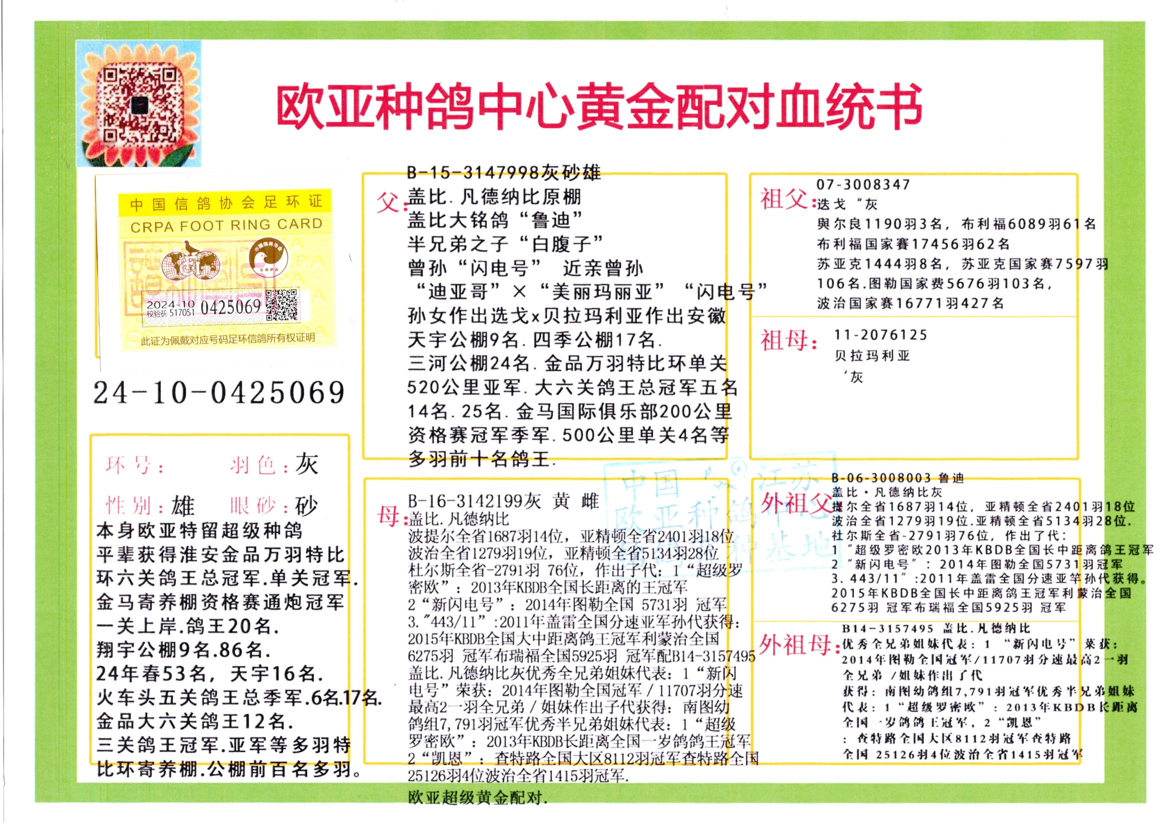 24年秋南京特比環(huán)歐亞榮獲大團(tuán)體冠軍.小團(tuán)體冠軍551公里大特比13名.14名.16名.19名.20名.21名.24名.26名.27名.28名.42名.52名.54名.57名.65名.66名.68名.70名.71名.72名.74名.76名.80名.82名.83名.84名.85名.86名.90名.92名.110名.116名.121名.122名.128名.131名.158名.161名.164名.165名.166名.172名.174名.177名.182名.195名.196名.201名.205名.208名.210名.216名.253名.269名.275名.276名.294名.296名.299名,,24年秋云南天南銅都公棚決賽415名.天南銅都小棚決賽409名.云南玉活公棚決賽102名.490名.團(tuán)體32名上籠二羽進(jìn)二羽,天南銅都大棚506公里決賽445名。熱烈祝賀河北省巨鹿縣李蘭生老師用歐亞泰山號血系連續(xù)十一年奪冠軍,河北省國家賽冠軍.全國季軍等多次前十名高位,揚州王軍王總用歐亞利奧24年春季獲山東翔宇公棚決賽33名蓋比53名。南京劉正龍劉總用歐亞蓋比獲得24年秋山東濰坊國際公棚決賽42名.精英賽30名.三關(guān)鴿王71名.決賽86名.加站賽16名.南京市特比環(huán)A組鴿王9名.B組鴿王5名.6名.C組鴿王5名.精英賽冠軍4名.技能賽A組冠軍4名.5名.秦淮區(qū)特比環(huán)榮獲15名.46名.48名.87名。四川西昌徐亮徐總用歐亞利奧獲得涼山州聚友決賽177名.第二關(guān)亞軍雙關(guān)鴿王19名.三關(guān)鴿王105名.云南豪庭公棚決賽603名。熱烈祝賀24年四川重慶翔園鴿舍用歐亞泰山號榮獲春季400公里冠軍.秋季500公里冠軍,河北王總用詹森X利奧獲得千羽千翔公棚400公里冠軍,廣東蔡楷煥榮獲24年秋愛好者 賽鴿俱樂部三關(guān)鴿王季軍.一關(guān)420公里99名.二關(guān)450公里11名.三關(guān)520公里32名.單關(guān)季軍.7名.12名,江西李衛(wèi)興榮獲貴州紅楓公棚8名.共翔俱樂部寄養(yǎng)棚四關(guān)綜合鴿王30名.一關(guān)400公里78名.二關(guān)500公里55名.三關(guān)520公里37名.四關(guān)500公里57名.同父母獲公棚18名.雷鳴獲得武漢黃浦育翔中心冠軍,四川陳文獲得四川明鴻俱樂部300公里夢幻2名.3名.4名.9名.10名.13名.14名.15名.31名.34名.40名.41名.42名.43名.69名.71名.72名.73名.74名.94名.95名.97名.98名.99名.419公里決賽榮獲總冠軍7名.總共歸巢9羽,四川徐亮獲豪庭決賽603名,山西鄭勇獲得山西泰鑫公棚決賽255名詹森紅狐,熱烈祝賀馬總獲得開爾(飛躍隊)決賽9名獲獎金1310000萬元.第一關(guān)52名,天津津福資賽180公里96名.獲獎金429543萬元,歐亞支持全國鴿友24年秋多人報喜 祝大家取得更好成績,給歐亞報喜鴿友歐亞決定給每人贈送一羽超級種鴿。歐亞俱樂部特比環(huán)多關(guān)鴿王成績:15年秋淮安特比環(huán)黑色星期一全會上籠9700多羽,當(dāng)天無鴿歸巢,第二天全會歸巢357羽,本舍歸巢158羽.前十名八羽.前一百名歸巢57羽,16年春季獲五關(guān)鴿王總冠軍,總亞軍四名.六名.七名.九名.十名.晶藝俱樂部520公里冠亞季軍5名.6名.7名.9名.11名等,火車頭冠軍.季軍6名.8名.9名.10名,16年秋晶藝俱樂部特比環(huán)520公里亞軍.季軍4名.6名.7名.9名,15年春南京白下特比環(huán)冠軍.亞軍.季軍6名.7名.8名.9名.10名.指定鴿A B組獲得冠軍.亞軍.季軍4名.5名.,17年淮安特比環(huán)亞軍.4名.5名.7名.8名.10名.六關(guān)鴿王總冠軍.4名.6名.9名.10名,寄養(yǎng)棚宿遷劉總20羽特比環(huán)獲冠軍.季軍.4名.7名.8名.9名等。18年榮獲萬羽特比環(huán)六關(guān)鴿王總冠軍.總亞軍.總季軍.6名.8名.十名.單關(guān)四羽冠軍.二羽亞軍.四羽季軍.前十名27羽。19年秋萬羽特比環(huán)六關(guān)鴿王總亞軍.總季軍.5名.8名等,單關(guān)二羽冠軍.三羽亞軍.一羽季軍前十名31羽。20年秋淮安市鴿會四關(guān)特比環(huán)大賽風(fēng)雨無阻鴿王亞軍.鴿王六名,金品俱樂部萬羽特比環(huán)六關(guān)鴿王總冠軍,總亞軍.四名.五名.六名.七名.八名.十名.前二百名鴿王35羽,單關(guān)冠亞季軍前十名四十多羽,火車頭五關(guān)鴿王季軍.六名.八名.前二百名鴿王十七羽。20年春榮獲淮安五區(qū)一市四關(guān)鴿王總冠軍.亞軍.四名.八名.九名。21年秋榮獲金品萬羽特比環(huán)大賽六關(guān)鴿王總亞軍.總季軍.四名.七名.九名.十名.單關(guān)冠亞軍季軍前十名三十多羽;疖囶^協(xié)會鴿王六名.七名.十名.單關(guān)前十名十七羽。22年秋榮獲鴿王總冠軍.總亞軍.5名.7名.8名.9名.11名.單關(guān)冠亞季軍前十名三十多羽,第一關(guān)單關(guān)前二百名四十多羽,第二關(guān)前二百名三十多羽,第三關(guān)前二百名四十多羽,第四關(guān)前二百名四十多羽,第五關(guān)前一百名53羽。23年秋榮獲鴿王季軍.五名.八名.十名.13名.17名.20名.27名等多羽鴿王.單關(guān)前十名二十多羽。公棚.寄養(yǎng)棚部分成績:16年秋寧夏黃河公棚總冠軍電腦戈馬力指定通炮冠軍,17年送八羽參賽獲得鴿王八名進(jìn)獎四名,支持韓總榮獲八名。支持鴿友榮獲寧夏中衛(wèi)公棚決賽總冠軍.精英賽冠軍,支持18年寧夏黃河公棚決賽冠軍詹森X泰山。安徽鼎博寄養(yǎng)棚院內(nèi)外四關(guān)鴿王總冠軍.鴿王十七名.三十七名同窩,鴿王39名.42名.58名.67名。18年山東公棚預(yù)賽冠軍.決賽65名.送八羽進(jìn)獎五羽.指定獲奔馳汽車一輛。支持鴿友獲得云南藍(lán)云公棚冠軍.蓋比X佛卡門。支持鴿友榮獲云南銀集公棚決賽冠軍 詹森427X520血系 速度賽6700羽冠軍。17年榮獲金馬俱樂部寄養(yǎng)棚四關(guān)鴿王總冠軍.季軍.六名.八名.第一關(guān)冠軍.亞軍.季軍四名.七名.十一名.金牌教練獎。支持鴿友18
