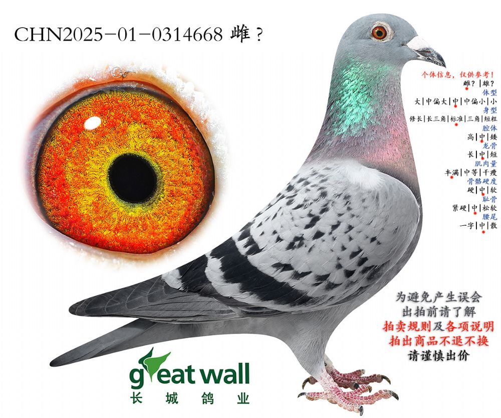 因拍賣鴿均是未做育過的種鴿或幼鴿,圖內(nèi)所標(biāo)雌雄僅供參考,實(shí)際性別已實(shí)物為準(zhǔn)。