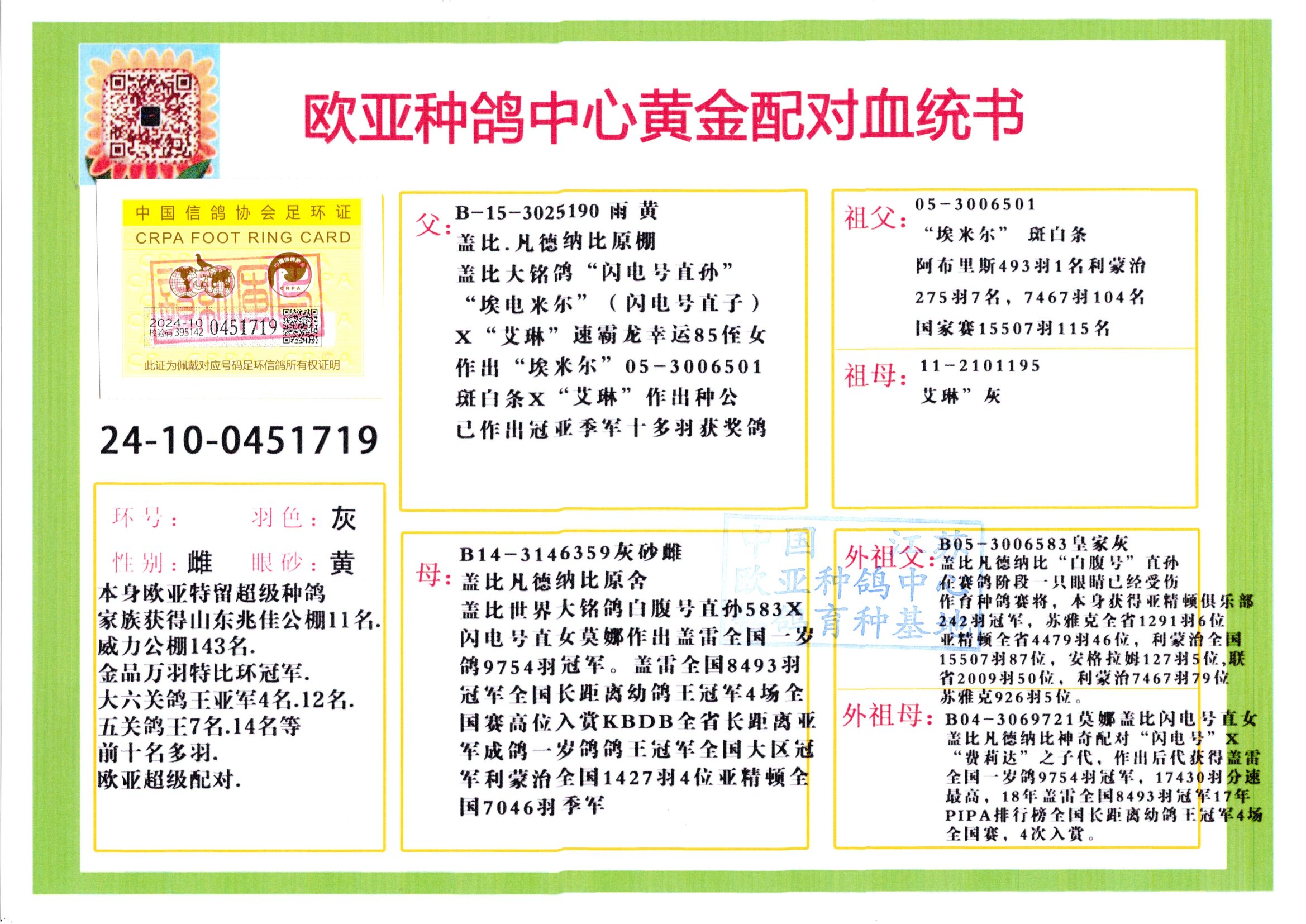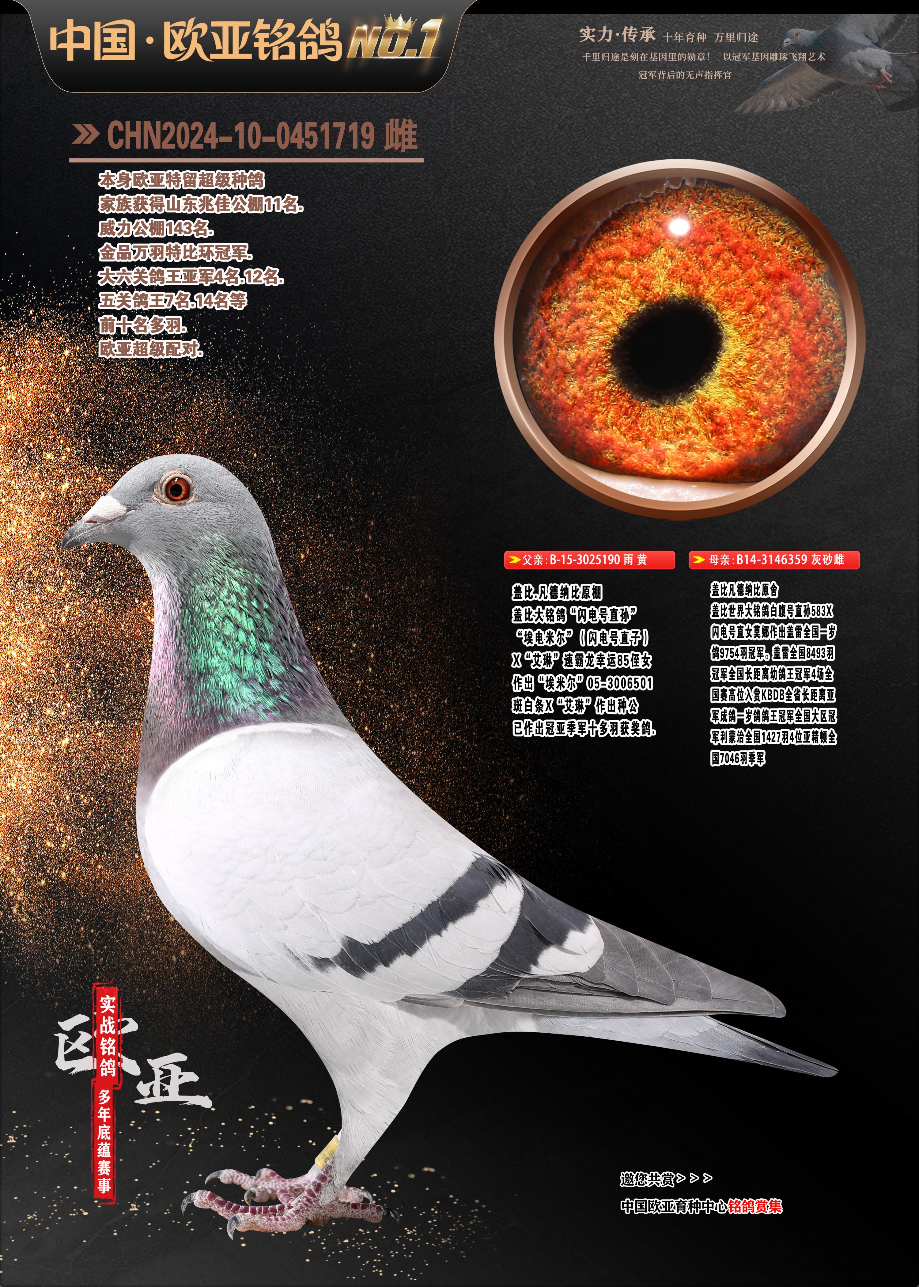 24年秋南京特比環(huán)歐亞榮獲大團(tuán)體冠軍.小團(tuán)體冠軍551公里大特比13名.14名.16名.19名.20名.21名.24名.26名.27名.28名.42名.52名.54名.57名.65名.66名.68名.70名.71名.72名.74名.76名.80名.82名.83名.84名.85名.86名.90名.92名.110名.116名.121名.122名.128名.131名.158名.161名.164名.165名.166名.172名.174名.177名.182名.195名.196名.201名.205名.208名.210名.216名.253名.269名.275名.276名.294名.296名.299名,,24年秋云南天南銅都公棚決賽415名.天南銅都小棚決賽409名.云南玉活公棚決賽102名.490名.團(tuán)體32名上籠二羽進(jìn)二羽,天南銅都大棚506公里決賽445名。熱烈祝賀河北省巨鹿縣李蘭生老師用歐亞泰山號(hào)血系連續(xù)十一年奪冠軍,河北省國(guó)家賽冠軍.全國(guó)季軍等多次前十名高位,揚(yáng)州王軍王總用歐亞利奧24年春季獲山東翔宇公棚決賽33名蓋比53名。南京劉正龍劉總用歐亞蓋比獲得24年秋山東濰坊國(guó)際公棚決賽42名.精英賽30名.三關(guān)鴿王71名.決賽86名.加站賽16名.南京市特比環(huán)A組鴿王9名.B組鴿王5名.6名.C組鴿王5名.精英賽冠軍4名.技能賽A組冠軍4名.5名.秦淮區(qū)特比環(huán)榮獲15名.46名.48名.87名。四川西昌徐亮徐總用歐亞利奧獲得涼山州聚友決賽177名.第二關(guān)亞軍雙關(guān)鴿王19名.三關(guān)鴿王105名.云南豪庭公棚決賽603名。熱烈祝賀24年四川重慶翔園鴿舍用歐亞泰山號(hào)榮獲春季400公里冠軍.秋季500公里冠軍,河北王總用詹森X利奧獲得千羽千翔公棚400公里冠軍,廣東蔡楷煥榮獲24年秋愛(ài)好者 賽鴿俱樂(lè)部三關(guān)鴿王季軍.一關(guān)420公里99名.二關(guān)450公里11名.三關(guān)520公里32名.單關(guān)季軍.7名.12名,江西李衛(wèi)興榮獲貴州紅楓公棚8名.共翔俱樂(lè)部寄養(yǎng)棚四關(guān)綜合鴿王30名.一關(guān)400公里78名.二關(guān)500公里55名.三關(guān)520公里37名.四關(guān)500公里57名.同父母獲公棚18名.雷鳴獲得武漢黃浦育翔中心冠軍,四川陳文獲得四川明鴻俱樂(lè)部300公里夢(mèng)幻2名.3名.4名.9名.10名.13名.14名.15名.31名.34名.40名.41名.42名.43名.69名.71名.72名.73名.74名.94名.95名.97名.98名.99名.419公里決賽榮獲總冠軍7名.總共歸巢9羽,四川徐亮獲豪庭決賽603名,山西鄭勇獲得山西泰鑫公棚決賽255名詹森紅狐,熱烈祝賀馬總獲得開(kāi)爾(飛躍隊(duì))決賽9名獲獎(jiǎng)金1310000萬(wàn)元.第一關(guān)52名,天津津福資賽180公里96名.獲獎(jiǎng)金429543萬(wàn)元,歐亞支持全國(guó)鴿友24年秋多人報(bào)喜 祝大家取得更好成績(jī),給歐亞報(bào)喜鴿友歐亞決定給每人贈(zèng)送一羽超級(jí)種鴿。歐亞俱樂(lè)部特比環(huán)多關(guān)鴿王成績(jī):15年秋淮安特比環(huán)黑色星期一全會(huì)上籠9700多羽,當(dāng)天無(wú)鴿歸巢,第二天全會(huì)歸巢357羽,本舍歸巢158羽.前十名八羽.前一百名歸巢57羽,16年春季獲五關(guān)鴿王總冠軍,總亞軍四名.六名.七名.九名.十名.晶藝俱樂(lè)部520公里冠亞季軍5名.6名.7名.9名.11名等,火車(chē)頭冠軍.季軍6名.8名.9名.10名,16年秋晶藝俱樂(lè)部特比環(huán)520公里亞軍.季軍4名.6名.7名.9名,15年春南京白下特比環(huán)冠軍.亞軍.季軍6名.7名.8名.9名.10名.指定鴿A B組獲得冠軍.亞軍.季軍4名.5名.,17年淮安特比環(huán)亞軍.4名.5名.7名.8名.10名.六關(guān)鴿王總冠軍.4名.6名.9名.10名,寄養(yǎng)棚宿遷劉總20羽特比環(huán)獲冠軍.季軍.4名.7名.8名.9名等。18年榮獲萬(wàn)羽特比環(huán)六關(guān)鴿王總冠軍.總亞軍.總季軍.6名.8名.十名.單關(guān)四羽冠軍.二羽亞軍.四羽季軍.前十名27羽。19年秋萬(wàn)羽特比環(huán)六關(guān)鴿王總亞軍.總季軍.5名.8名等,單關(guān)二羽冠軍.三羽亞軍.一羽季軍前十名31羽。20年秋淮安市鴿會(huì)四關(guān)特比環(huán)大賽風(fēng)雨無(wú)阻鴿王亞軍.鴿王六名,金品俱樂(lè)部萬(wàn)羽特比環(huán)六關(guān)鴿王總冠軍,總亞軍.四名.五名.六名.七名.八名.十名.前二百名鴿王35羽,單關(guān)冠亞季軍前十名四十多羽,火車(chē)頭五關(guān)鴿王季軍.六名.八名.前二百名鴿王十七羽。20年春榮獲淮安五區(qū)一市四關(guān)鴿王總冠軍.亞軍.四名.八名.九名。21年秋榮獲金品萬(wàn)羽特比環(huán)大賽六關(guān)鴿王總亞軍.總季軍.四名.七名.九名.十名.單關(guān)冠亞軍季軍前十名三十多羽;疖(chē)頭協(xié)會(huì)鴿王六名.七名.十名.單關(guān)前十名十七羽。22年秋榮獲鴿王總冠軍.總亞軍.5名.7名.8名.9名.11名.單關(guān)冠亞季軍前十名三十多羽,第一關(guān)單關(guān)前二百名四十多羽,第二關(guān)前二百名三十多羽,第三關(guān)前二百名四十多羽,第四關(guān)前二百名四十多羽,第五關(guān)前一百名53羽。23年秋榮獲鴿王季軍.五名.八名.十名.13名.17名.20名.27名等多羽鴿王.單關(guān)前十名二十多羽。公棚.寄養(yǎng)棚部分成績(jī):16年秋寧夏黃河公棚總冠軍電腦戈馬力指定通炮冠軍,17年送八羽參賽獲得鴿王八名進(jìn)獎(jiǎng)四名,支持韓總榮獲八名。支持鴿友榮獲寧夏中衛(wèi)公棚決賽總冠軍.精英賽冠軍,支持18年寧夏黃河公棚決賽冠軍詹森X泰山。安徽鼎博寄養(yǎng)棚院內(nèi)外四關(guān)鴿王總冠軍.鴿王十七名.三十七名同窩,鴿王39名.42名.58名.67名。18年山東公棚預(yù)賽冠軍.決賽65名.送八羽進(jìn)獎(jiǎng)五羽.指定獲奔馳汽車(chē)一輛。支持鴿友獲得云南藍(lán)云公棚冠軍.蓋比X佛卡門(mén)。支持
