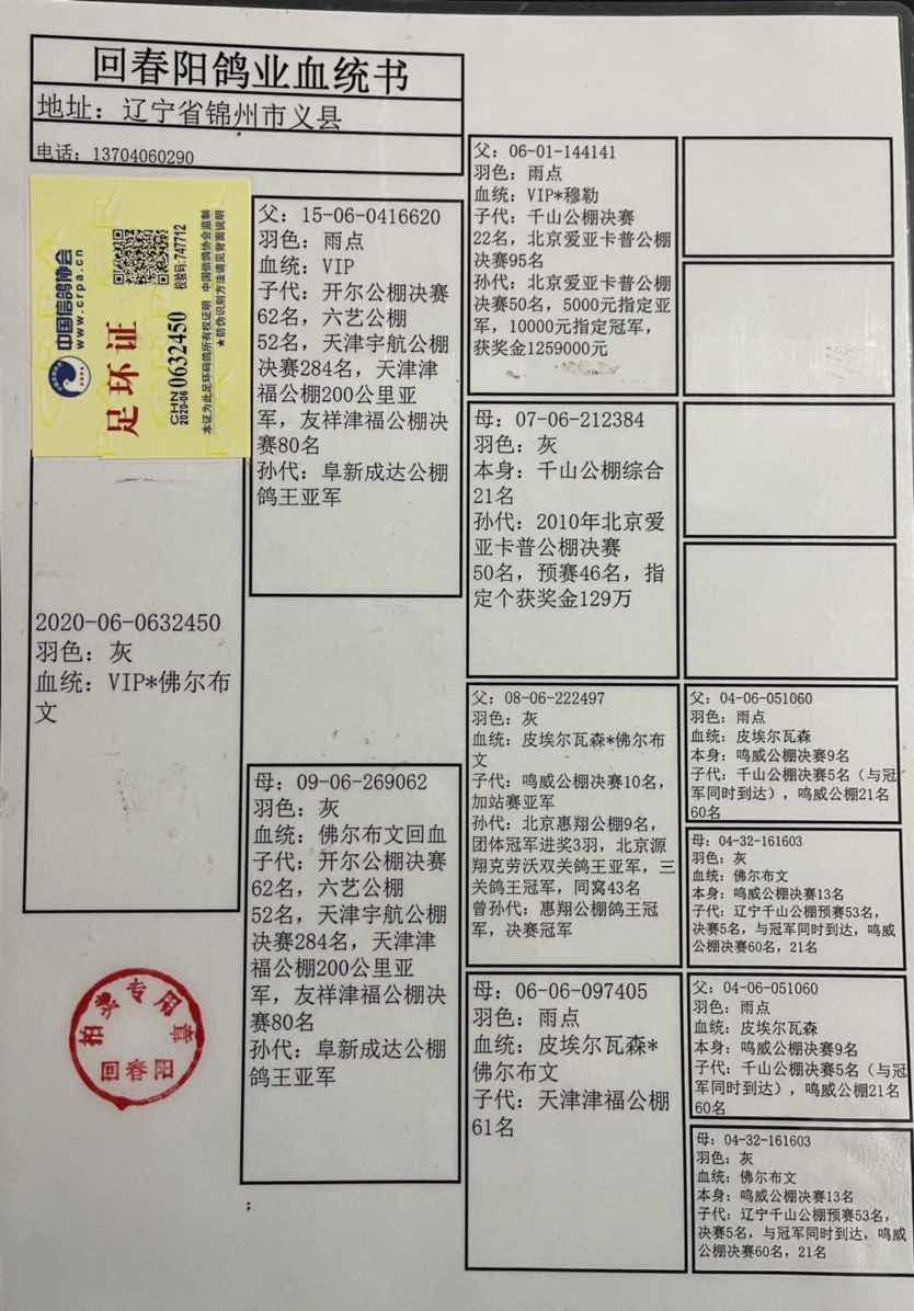有血統(tǒng)書的都會(huì)上傳,沒(méi)有的為鴿友提供鴿子照片及上面育種記錄信息