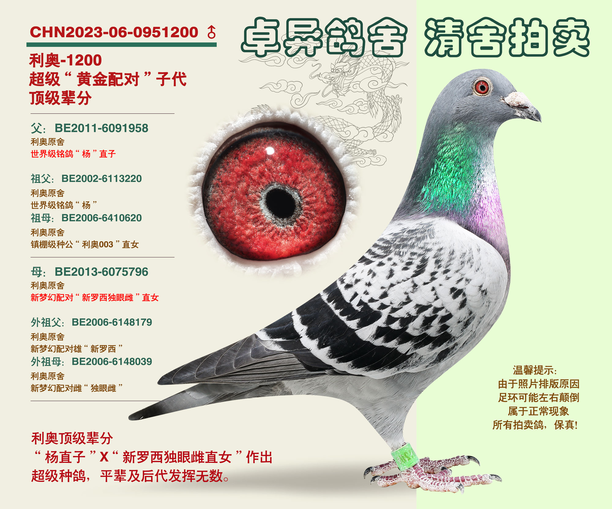 遼寧卓異鴿舍,清舍拍賣(mài),鴿主今年已退休,準(zhǔn)備移居海南養(yǎng)老,退出鴿界,舍內(nèi)諸多世界級(jí)超級(jí)銘鴿,更是頂級(jí)種鴿,斥巨資引進(jìn),清舍拍賣(mài),一羽不留,全部在中信網(wǎng)平臺(tái),周六(27號(hào))周日(28號(hào))結(jié)拍,公平競(jìng)拍,共81羽種賽鴿,過(guò)后再無(wú),