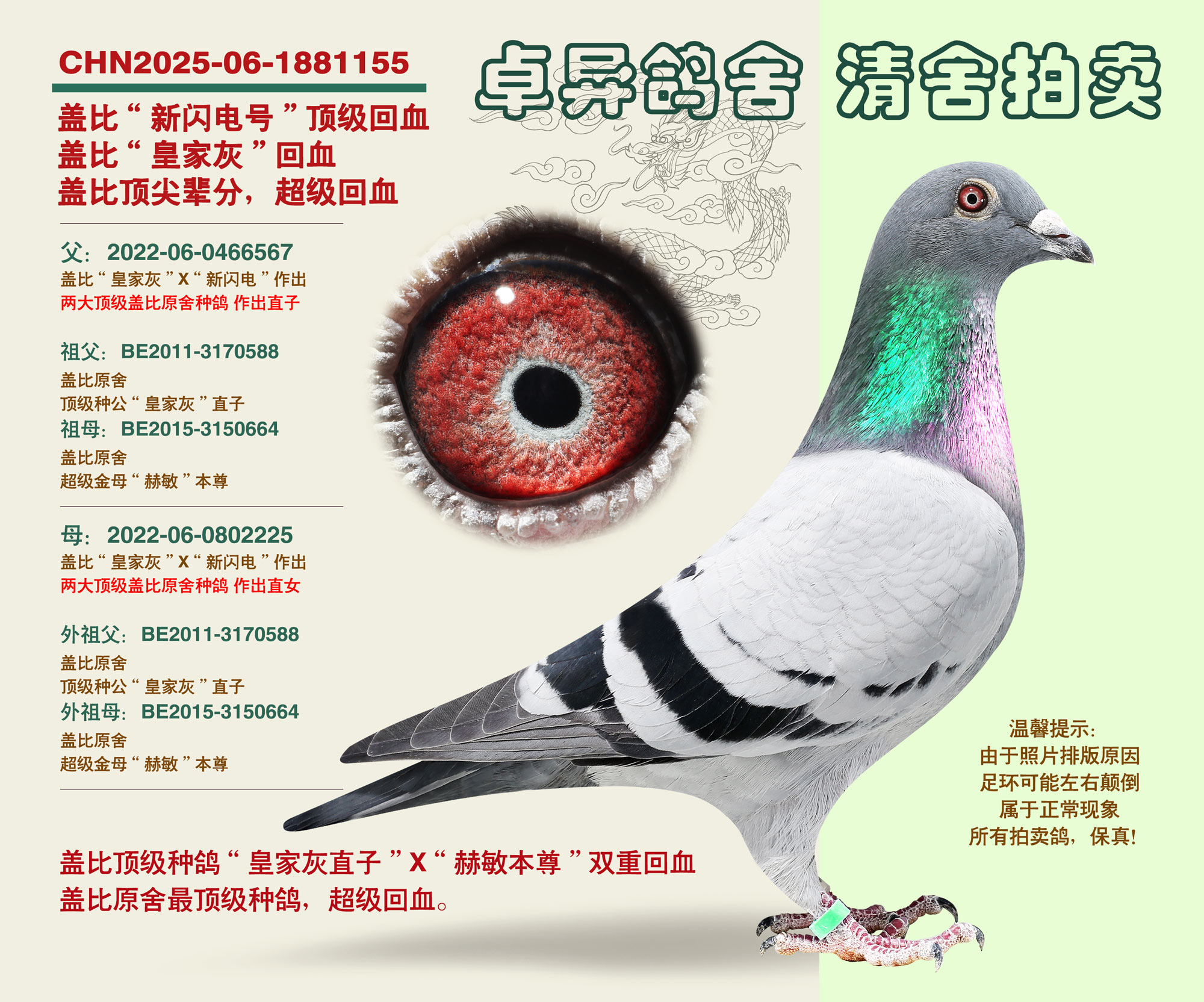 遼寧卓異鴿舍,清舍拍賣,鴿主今年已退休,準(zhǔn)備移居海南養(yǎng)老,退出鴿界,舍內(nèi)諸多世界級超級銘鴿,更是頂級種鴿,斥巨資引進,清舍拍賣,一羽不留,全部在中信網(wǎng)平臺,周六(27號)周日(28號)結(jié)拍,公平競拍,共81羽種賽鴿,過后再無,