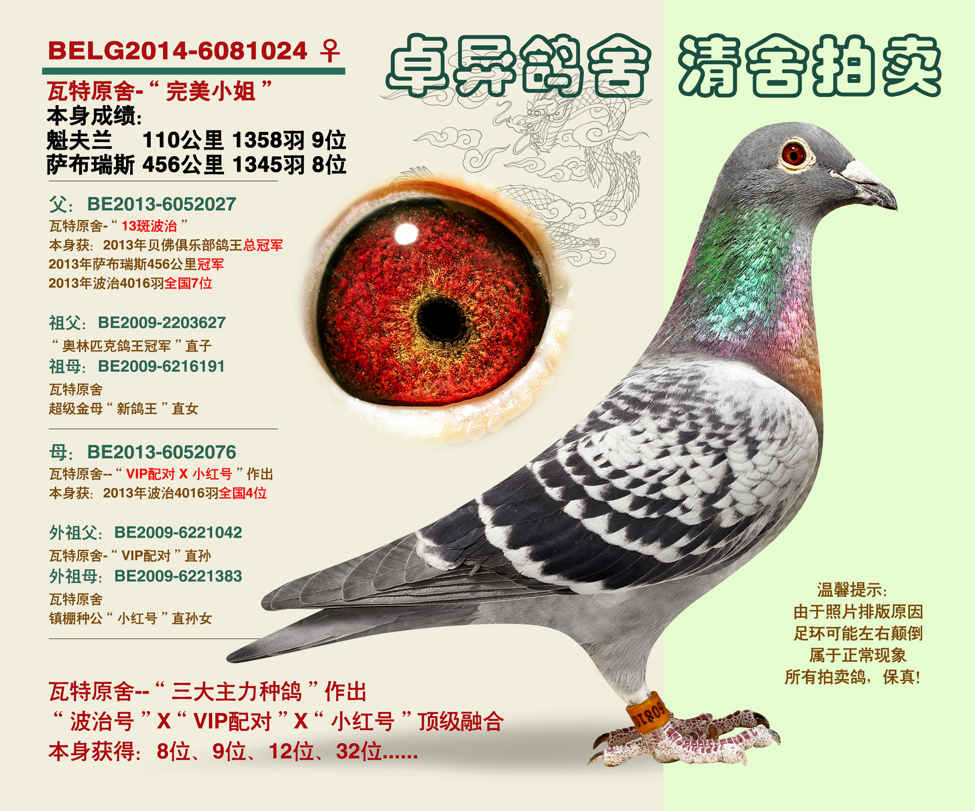 - 當(dāng)前查看拍賣鴿:瓦特原舍-銘鴿“完美號(hào)”本身8位