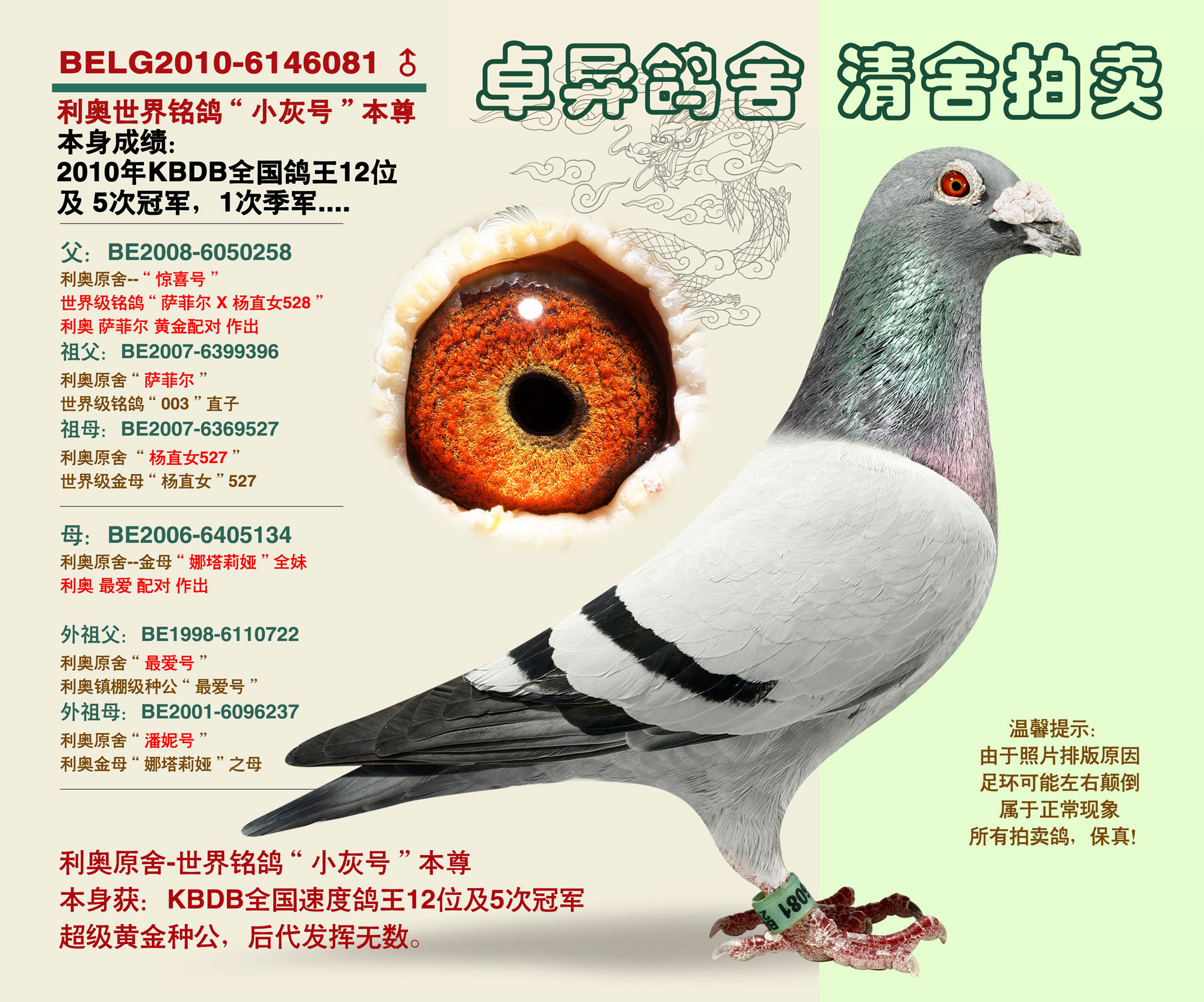 (當年長城鴿業(yè)引進回國,后被本舍極高價珍藏)