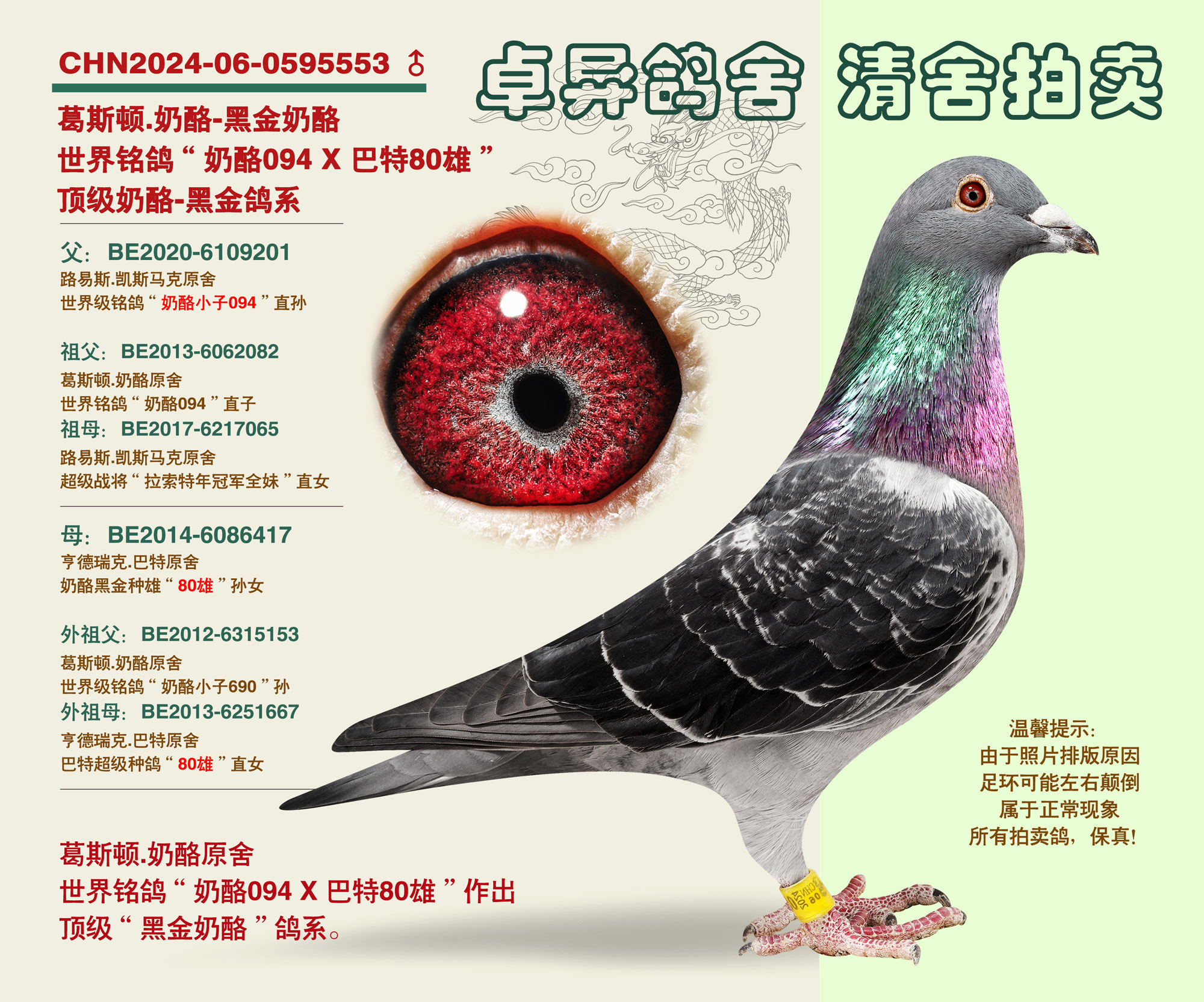 “黑金奶酪”鴿系的頂級(jí)輩分,黑金80雄。