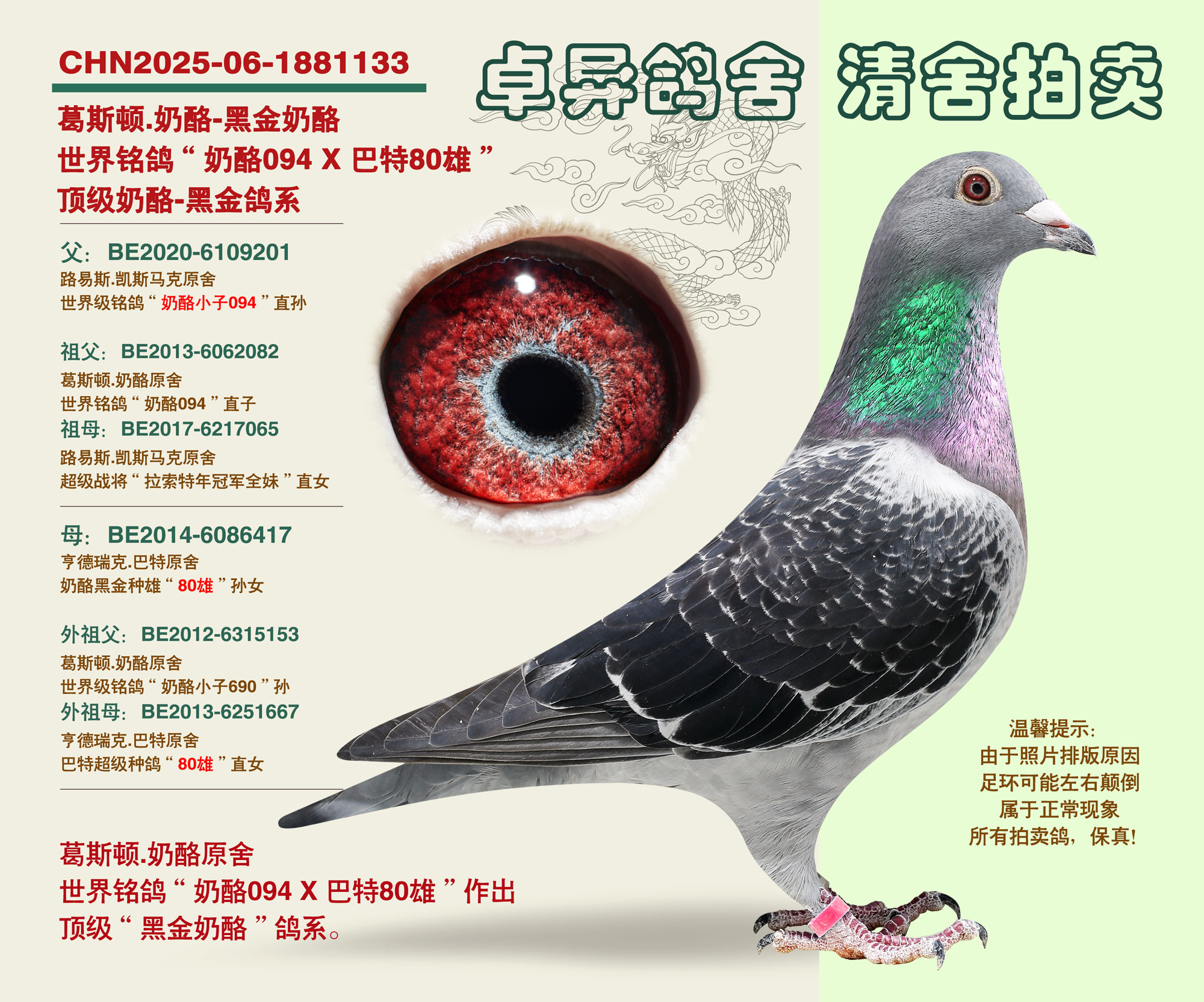 “黑金奶酪”鴿系的頂級輩分,黑金80雄。