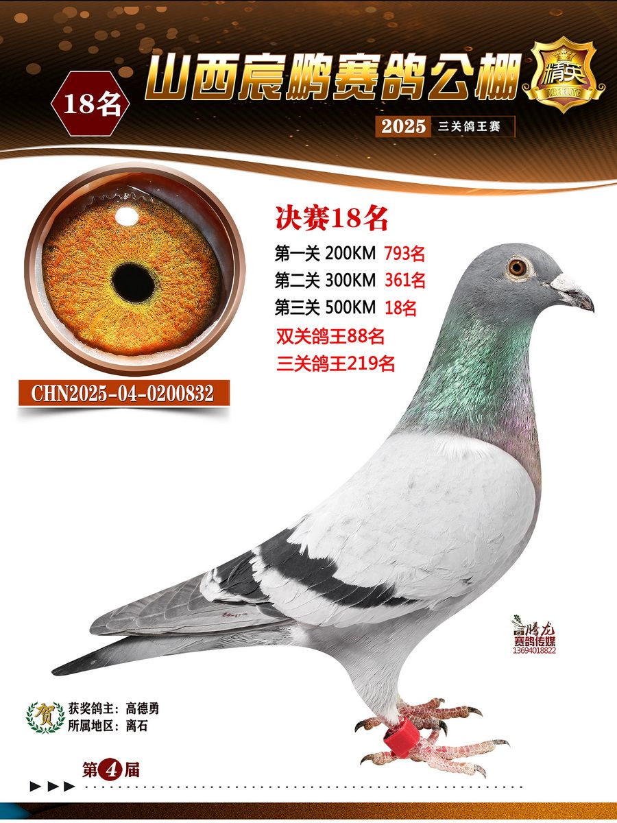 | 1628898 | 山西宸鵬決賽12名(三關(guān)鴿王冠軍)(雙關(guān)鴿王6名) | ¥500元 | 2次 |