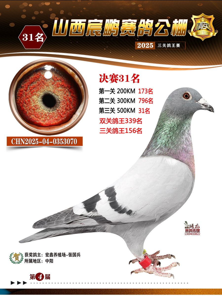 | 1628923 | 山西宸鵬決賽37名(雙關(guān)鴿王亞軍) | ¥200元 | 1次 |
