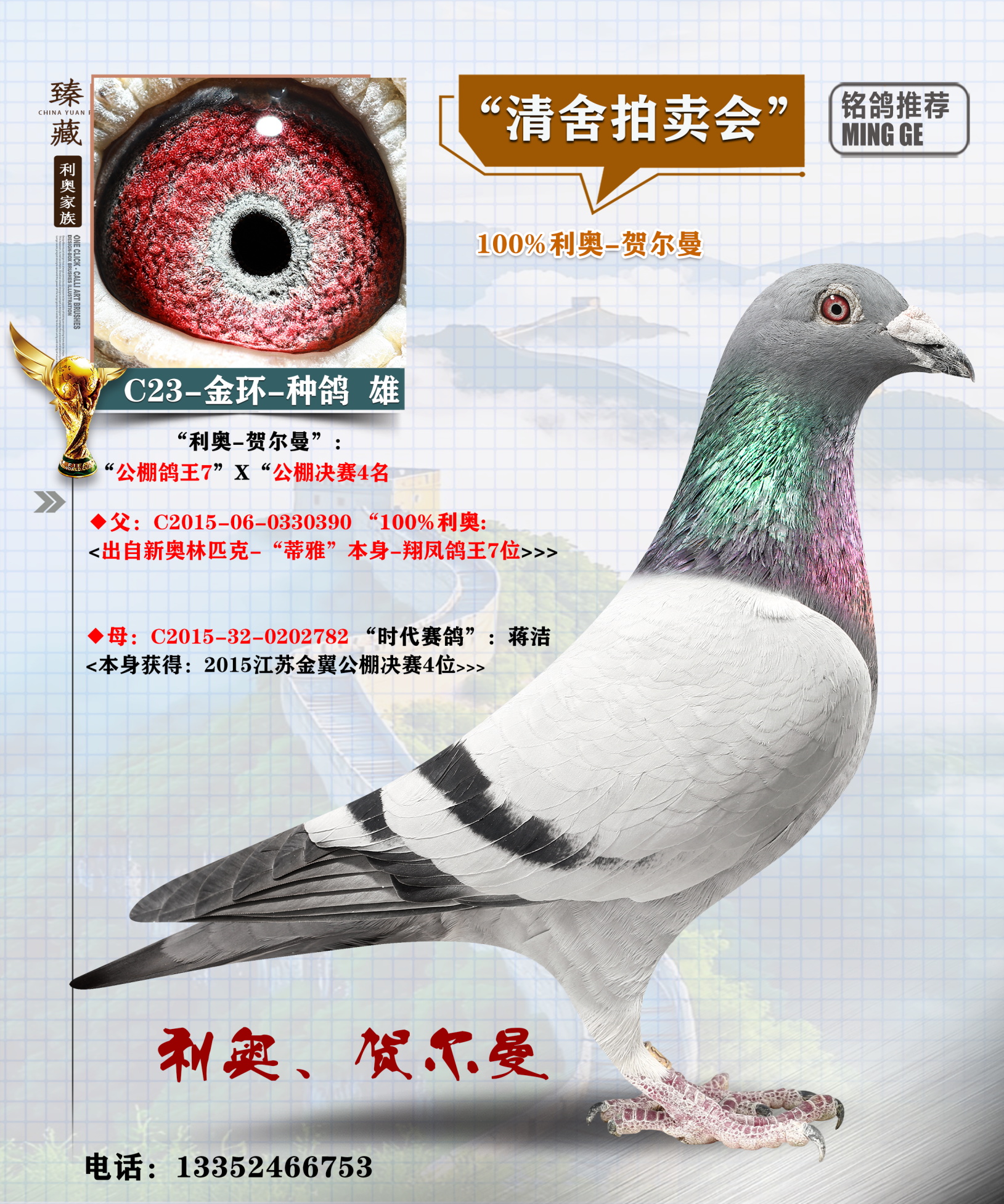 ◆母:C2015-32-0202782 “時代賽鴿”:蔣潔