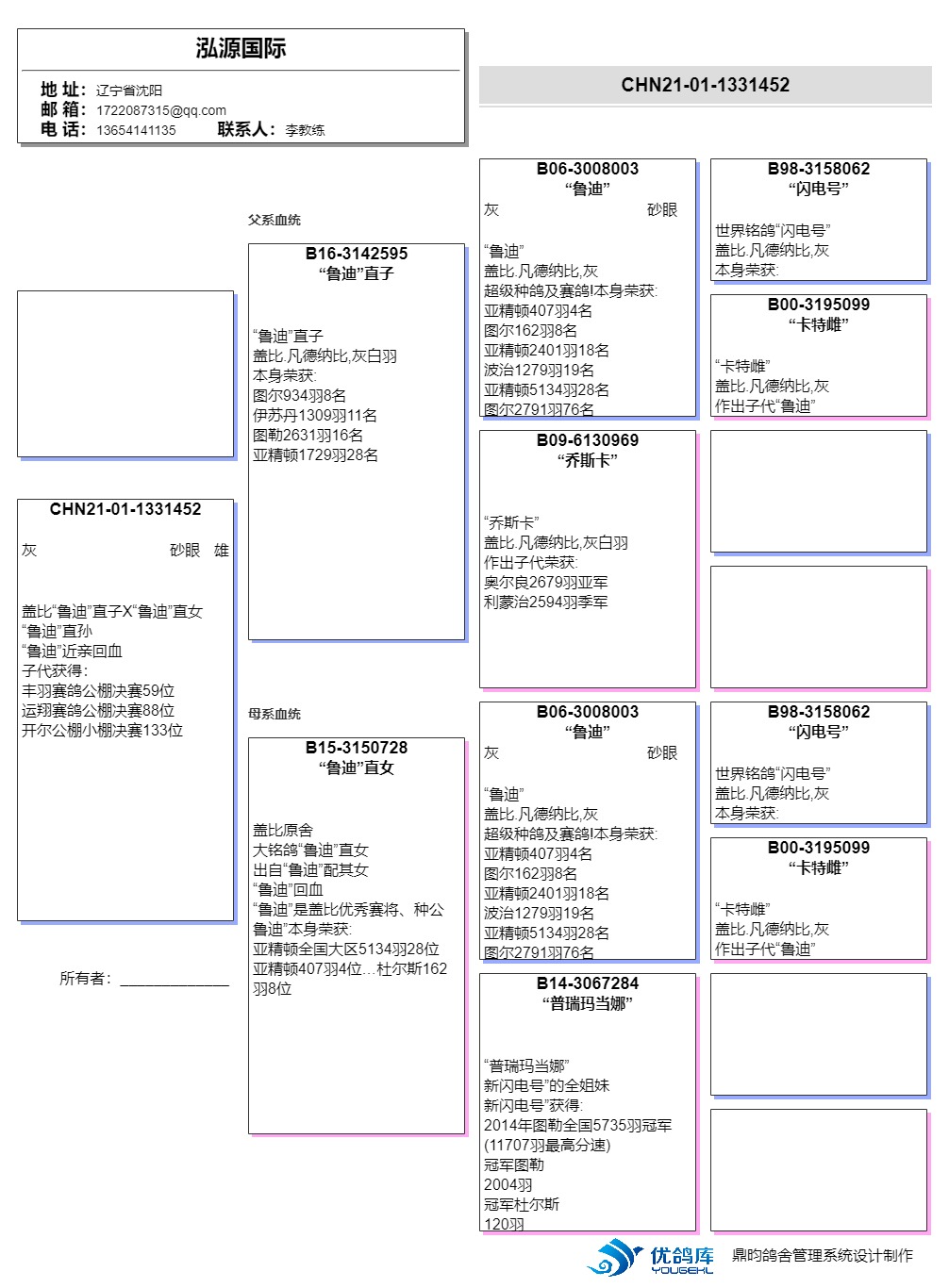 大銘鴿“魯?shù)稀敝迸?br>出自“魯?shù)稀迸淦渑?br>“魯?shù)稀被匮?br>“魯?shù)稀笔巧w比優(yōu)秀賽將、種公