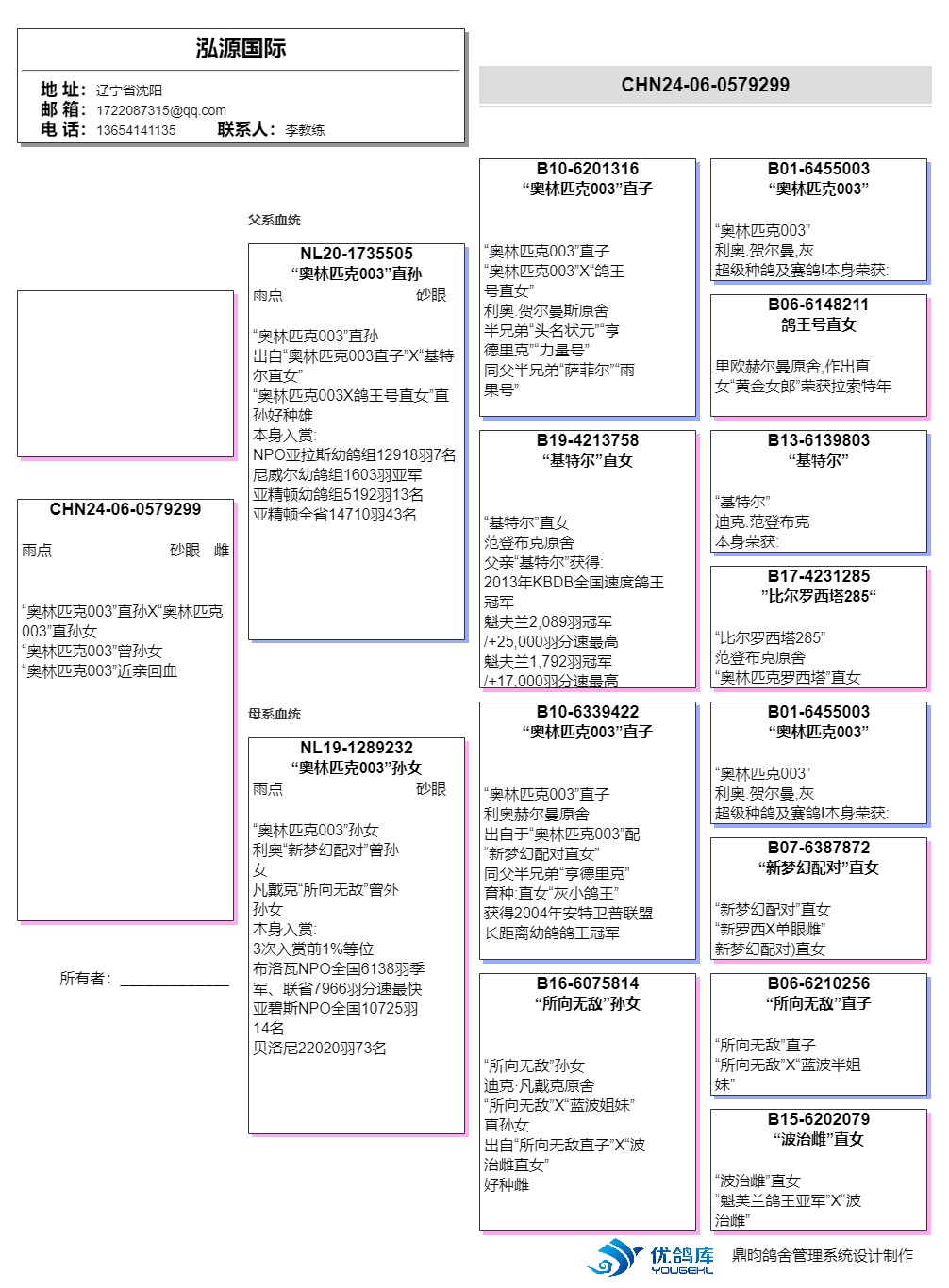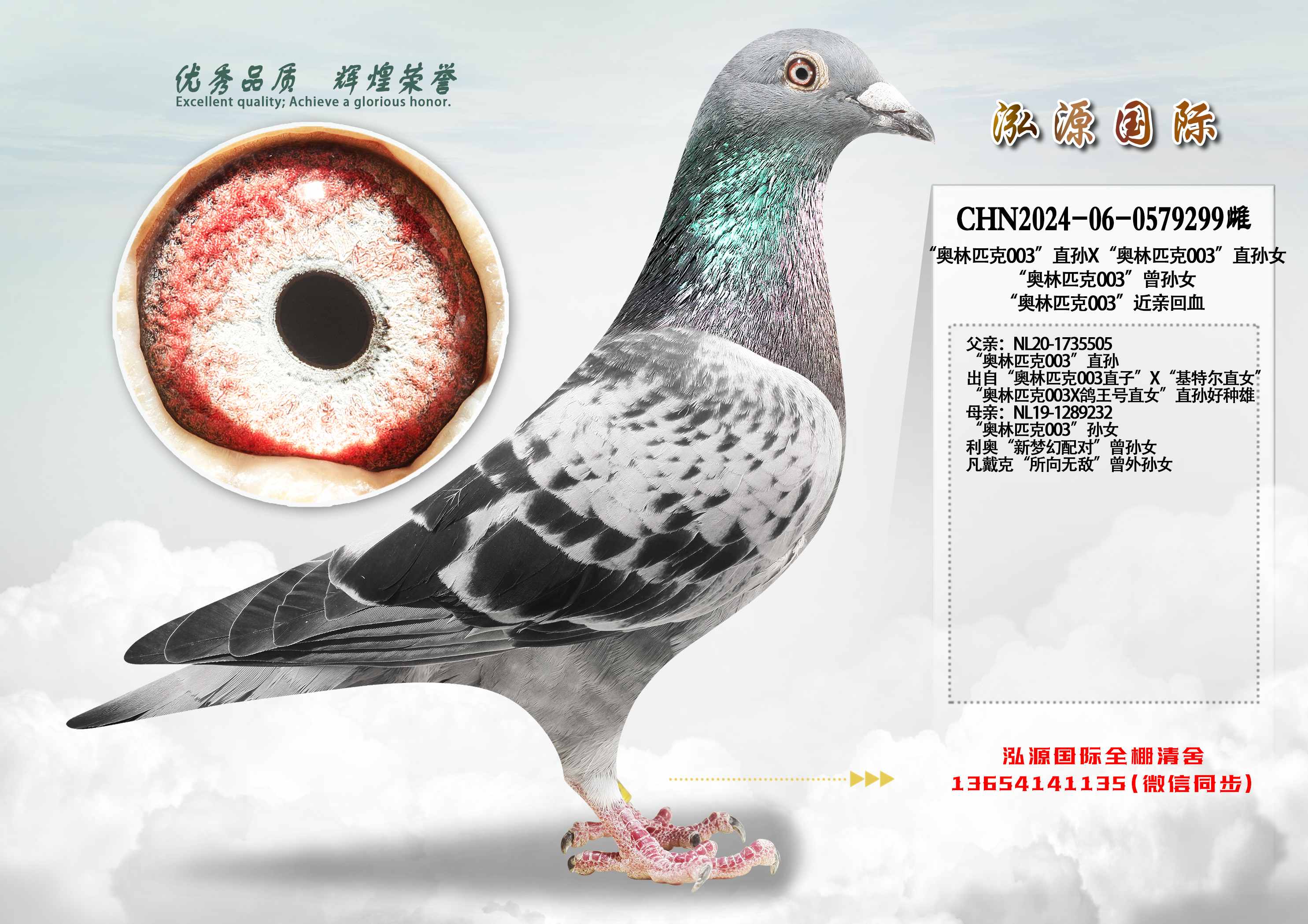 “奧林匹克003X鴿王號(hào)直女”直孫好種雄